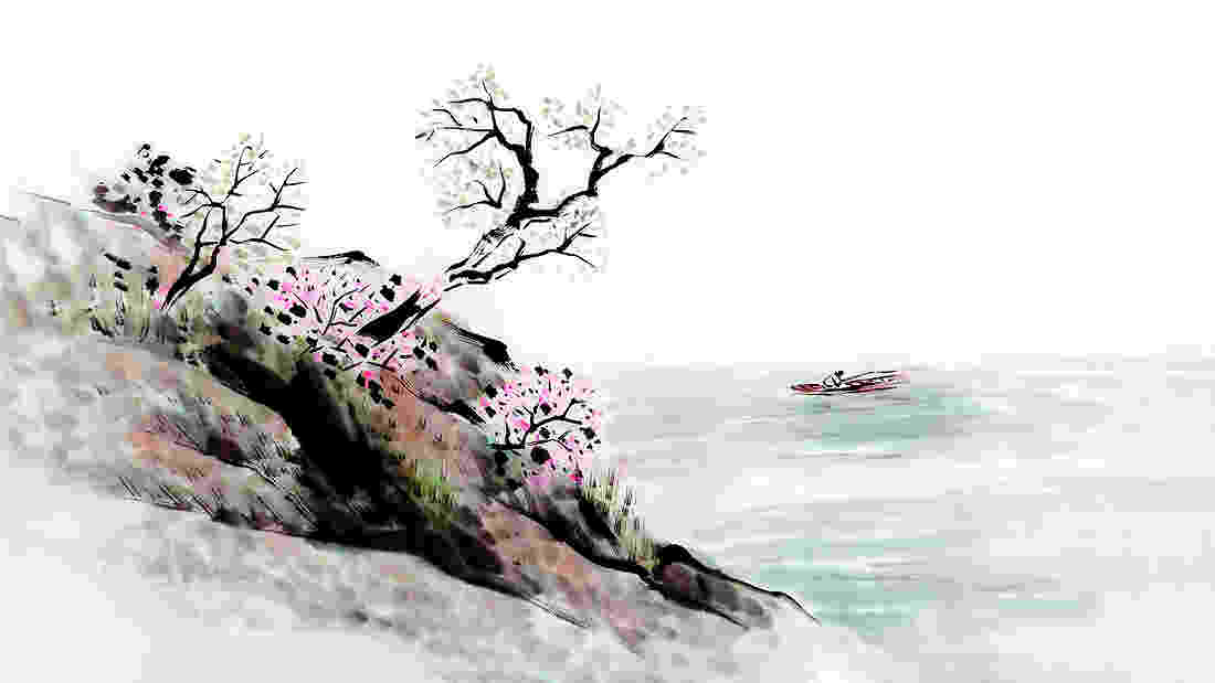이렇게 해서 수묵담채의 채색 산수화를 그려보았습니다. 수묵 산수화는 여러분들이 준을 그릴 때 완벽하게 그려둔 다음에, 수묵담채로 채색을 깨끗하게 하는 것입니다. 이번 강의 시간에는 이러한 묵화, 채색 산수화에 대해 알아보고 나무의 느낌을 적절하게 표현할 수 있는 갈필에 대해서도 알아보았습니다. 많은 도움이 되셨나요? 더욱 자세한 내용은 수묵담채의 멋진 작품들을 더욱 살펴볼 수 있는 도약아트 '한 폭에 담아내는 산수화' 강의를 통해서 만나보시길 바랍니다. 감사합니다.