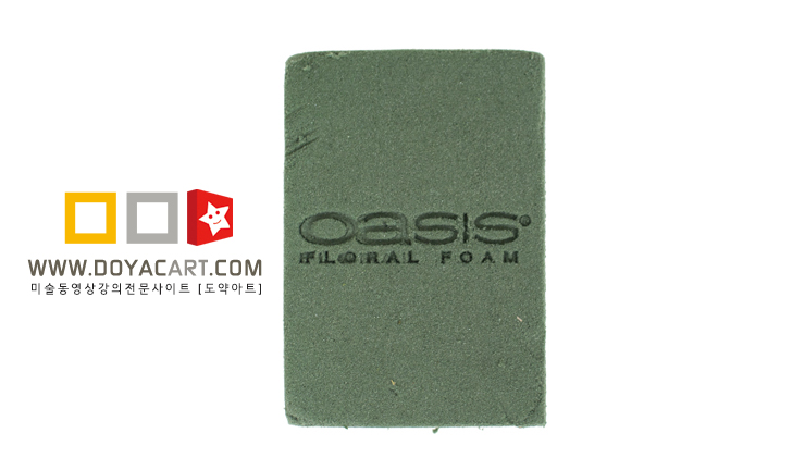 안녕하세요, 도약아트입니다. 이번에 소개해드릴 시크릿 플라워 클래스 무료특강 시간에는 플로랄 폼(오아시스)의 올바른 사용 방법에 대해서 알아보는 시간을 가져봅니다. 플라워에서 녹색 스펀지 형태의 '플로랄 폼'은 주로 꽃바구니처럼 꽃을 꽂는 형태의 작업을 할때 자주 사용됩니다. 물을 흡수시킨 플로랄 폼에 절화된 꽃들을 꽂게되면 폼 자체에 물을 머금고 있어서 오래도록 물을 주지 않아도 꽃의 수명이 유지됩니다. 정말 유용한 재료이죠? 그렇기 때문에 이 오아시스에 물을 먹이는 작업이 매우 중요하다고 볼 수 있습니다. 얼마나 물을 잘 흡수시켰는지에 따라 꽃의 수명이 결정되기 때문이죠,!