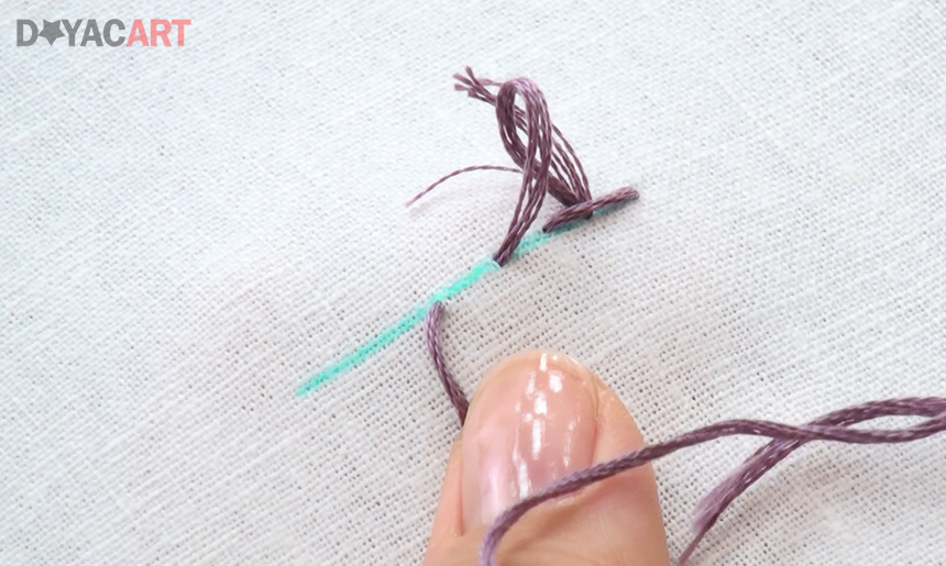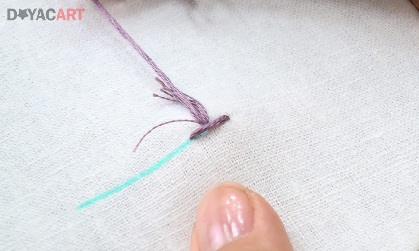 4. 실을 잡아당기면 실이 백 스티치로 고정되어 빠지지 않는 것을 확인할 수 있습니다.