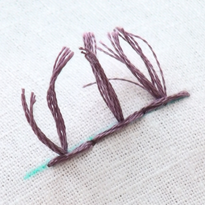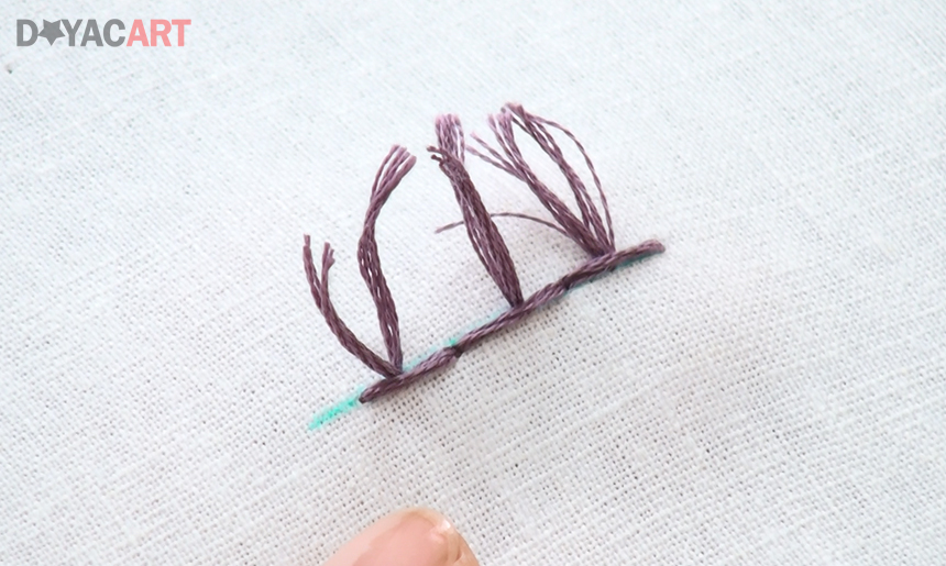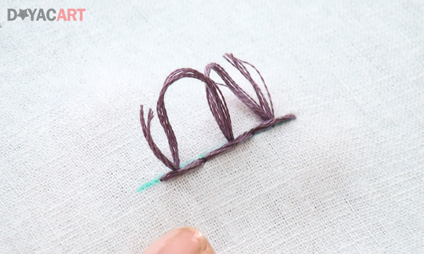 : 양탄자를 짜듯이 실을 원단 위로 털처럼 남기고 고정시키는 것을 반복하여 표현하는 입체자수 기법