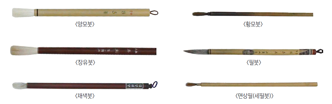 동양화 붓은 채색화, 사군자, 산수화 등 무엇을 그리느냐에 따라 종류가 아주 다양합니다. 따라서 그리는 용도에 맞게 사용하는 것이 효과적이며, 수묵화에서 쓰이는 붓들을 여러 가지 사용해본 후 자신에게 맞는 붓을 선택하는 것이 가장 좋습니다. (초급 강의에서는 겸호대필 3호를 사용하였습니다.)
