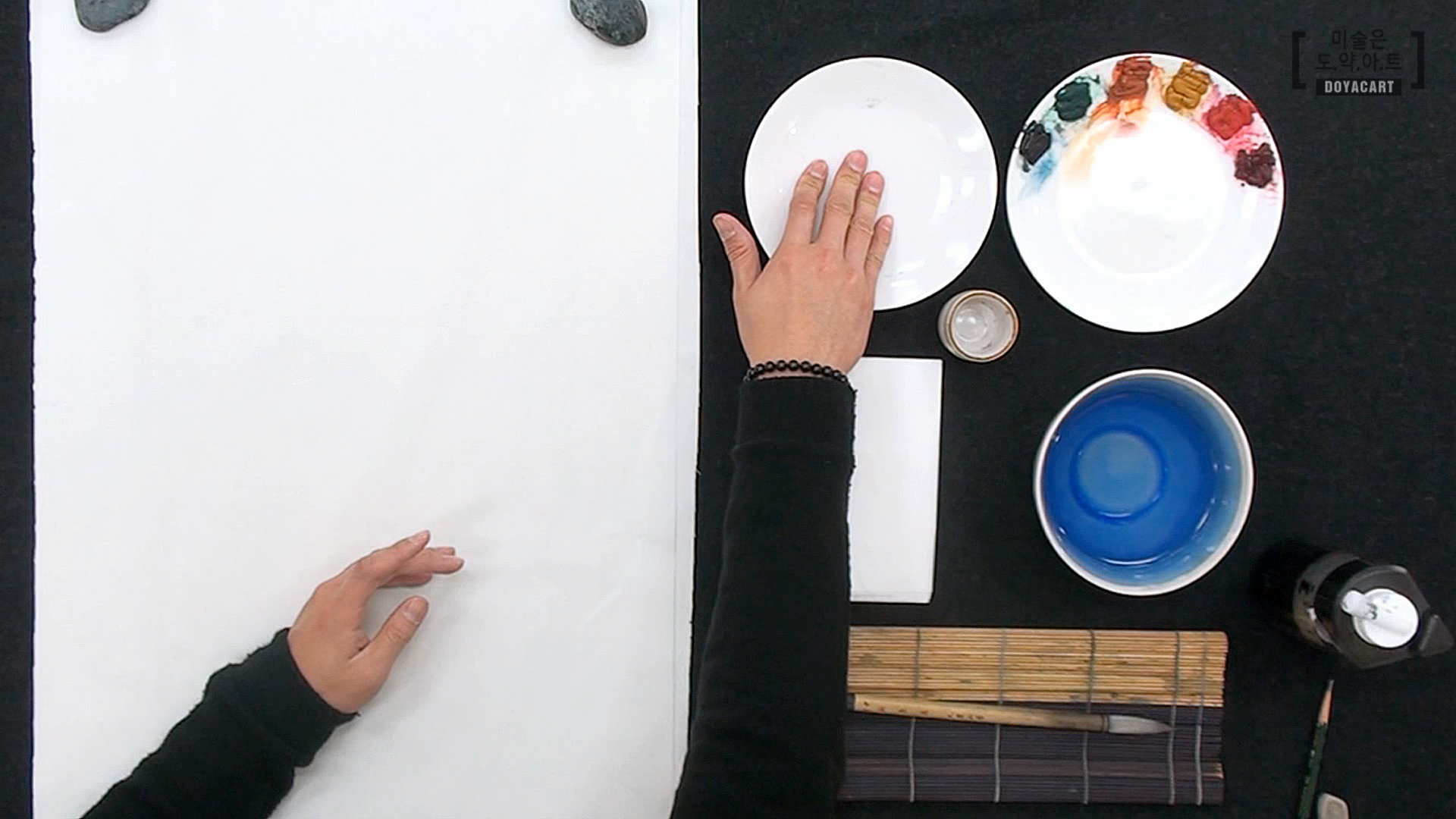 화선지나 한지는 굉장히 가벼워서 그림을 그리는 도중 종이가 들리거나 움직일 수 있습니다. 따라서 무거운 문진으로 종이를 눌러 고정시키곤 하는데, 문진이 없다면 무게가 있는 돌맹이같은 것으로 고정을 시켜주셔도 됩니다.