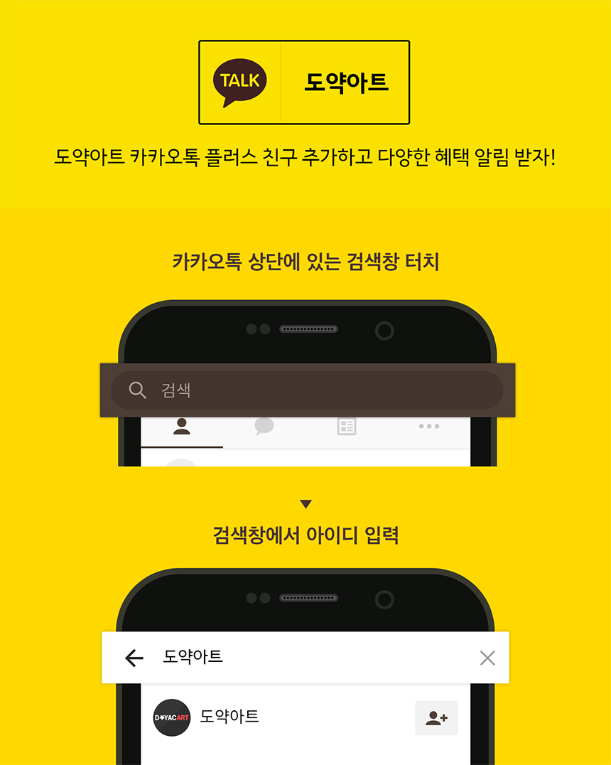 카카오톡에서 도약아트를 친구 추가하면 이벤트 오픈 / 할인쿠폰 발급 / 신규강의 오픈 안내 등 도약아트의 다양한 소식을 누구보다 빠르게! 받아보실 수 있습니다.
