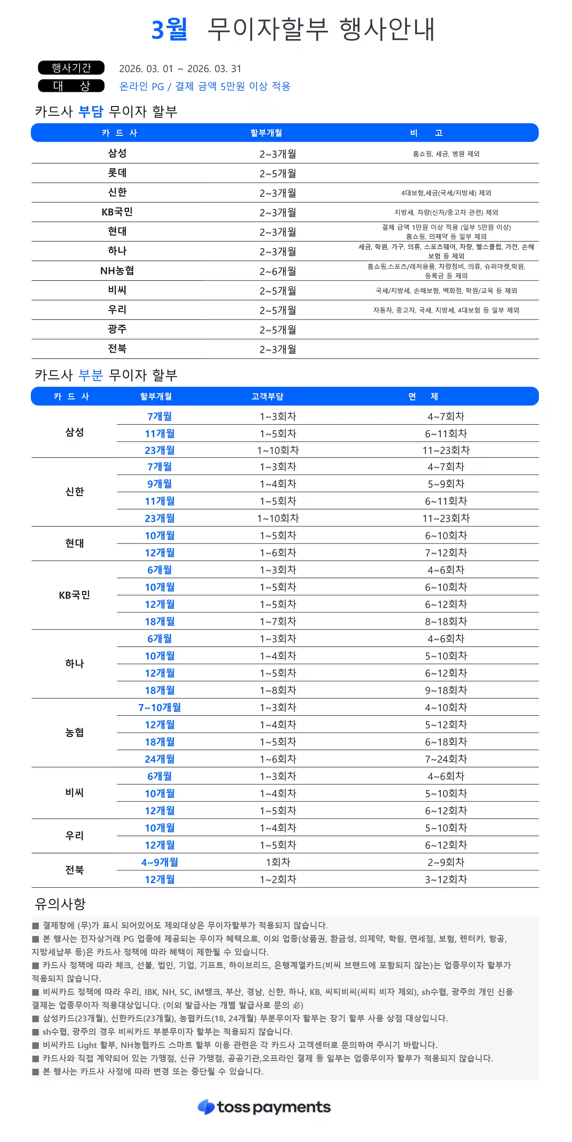 3월 신용카드 무이자 할부 행사 이벤트