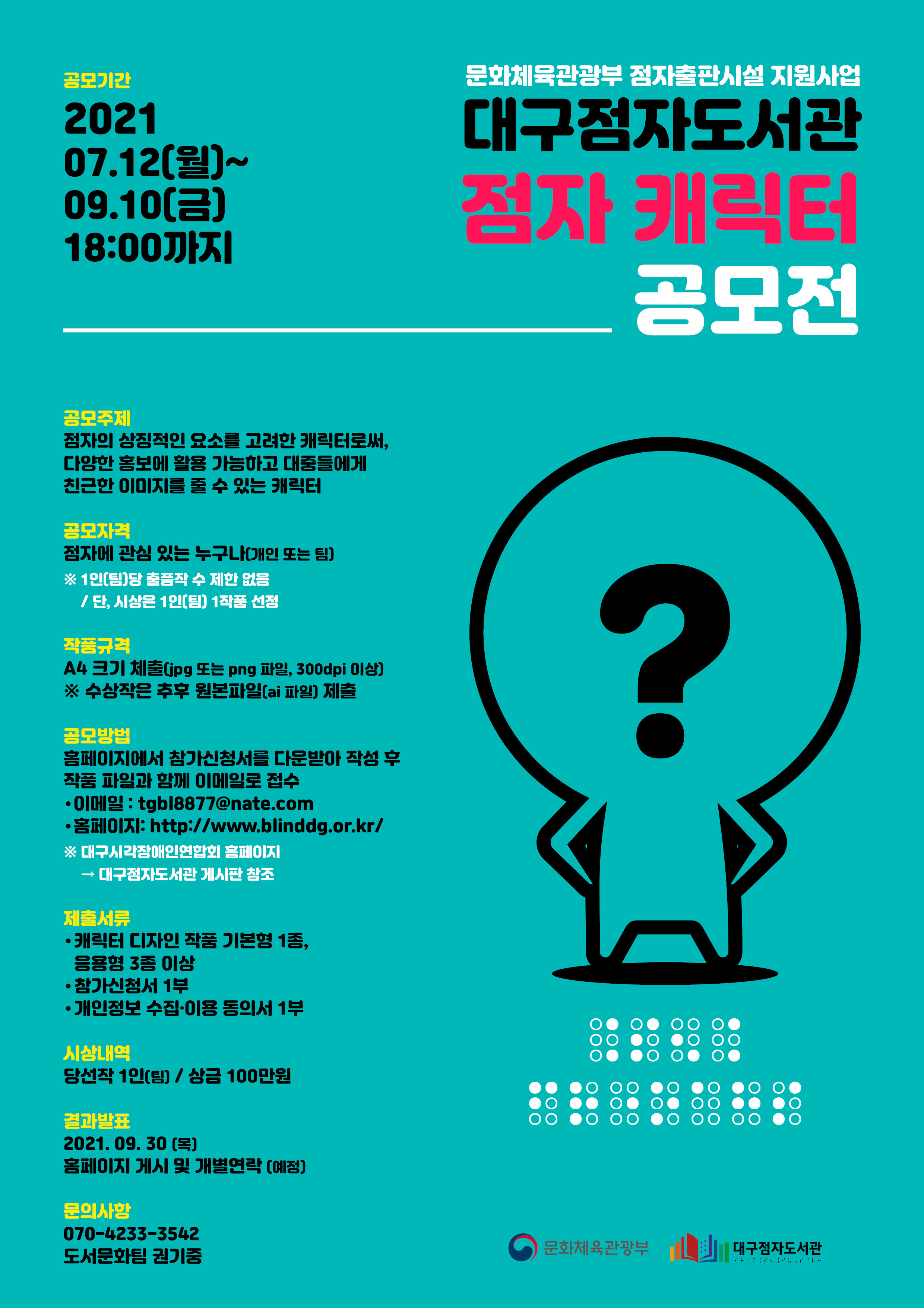 ※ 대구시각장애인연합회 홈페이지 → 대구점자도서관 게시판 참조