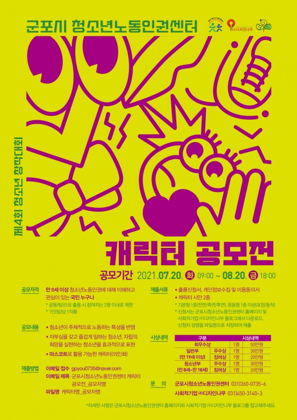 제4회 청소년 창작대회 군포시청소년노동인권센터 캐릭터 공모전