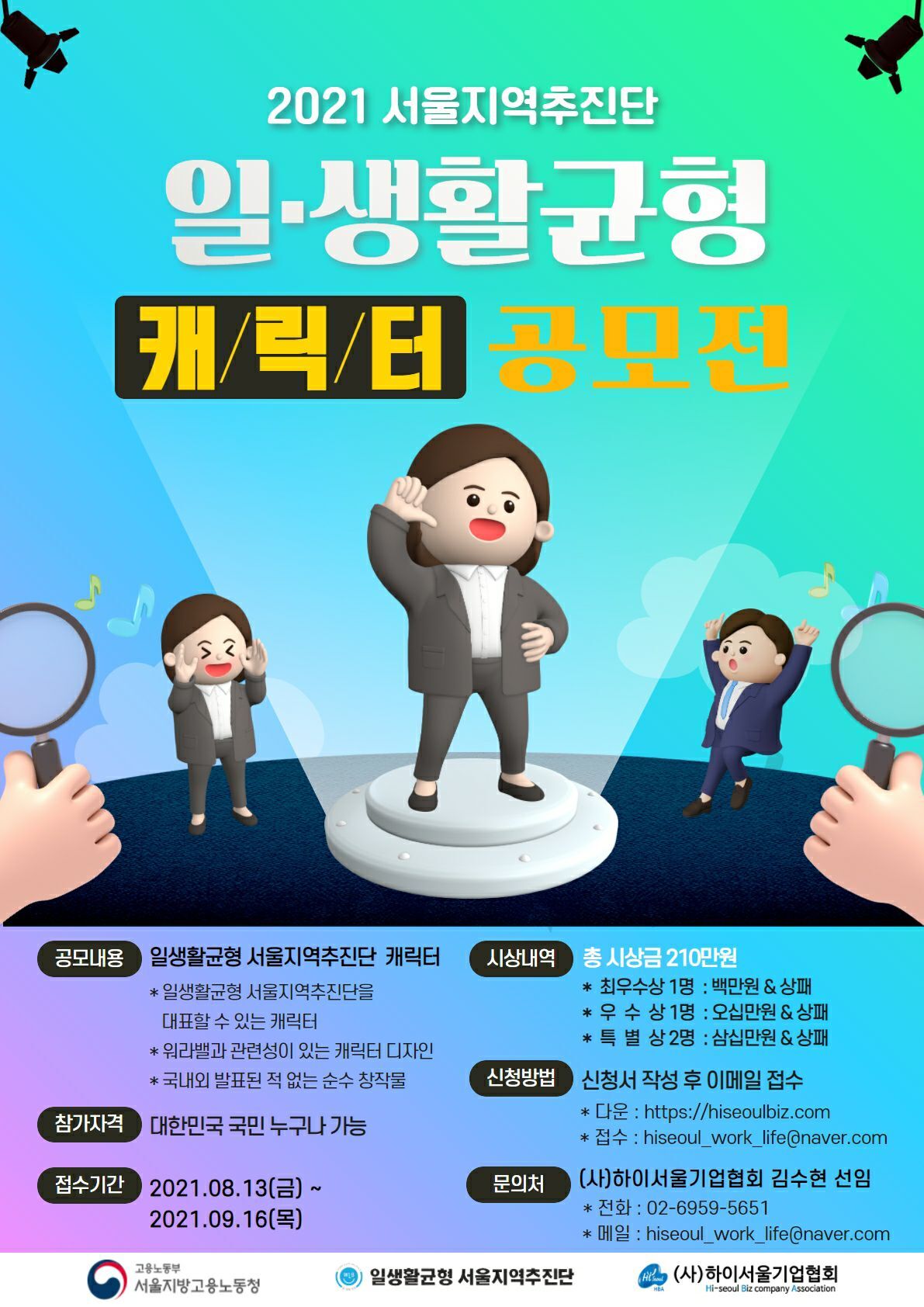 - (주제) 「일‧생활 균형 제도 및 문화 실천」을 홍보 할 수 있는 서울지역추진단 캐릭터 공모