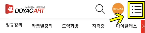 무통장입금 신청 내역은 사이트 오른쪽 위쪽에 [세줄 아이콘]을 클릭한 다음, [마이클래스 > 결제내역]에서 확인하실 수 있습니다.
