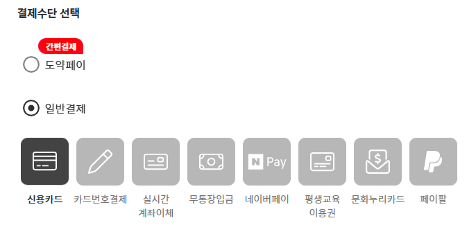 [결제] 결제방식에는 어떤것이 있나요?