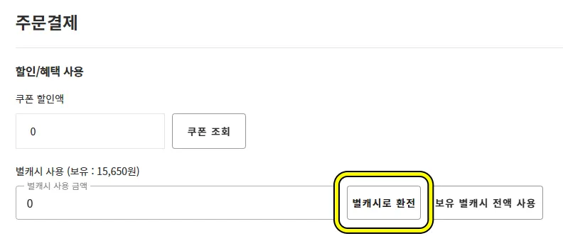 포인트가 5,000포인트 이상이 될 경우 별캐시로 변환하여, 결제 시 사용할 수 있습니다.