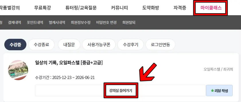 ※ 단, 작품별강의, 연장강의는 별도의 휴강 기능이 적용되지 않습니다. 이점 유의해 주시기 바랍니다.