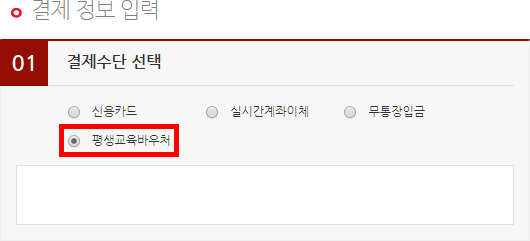 ② 결제수단 선택란에서 평생교육바우처 선택 후 결제합니다.