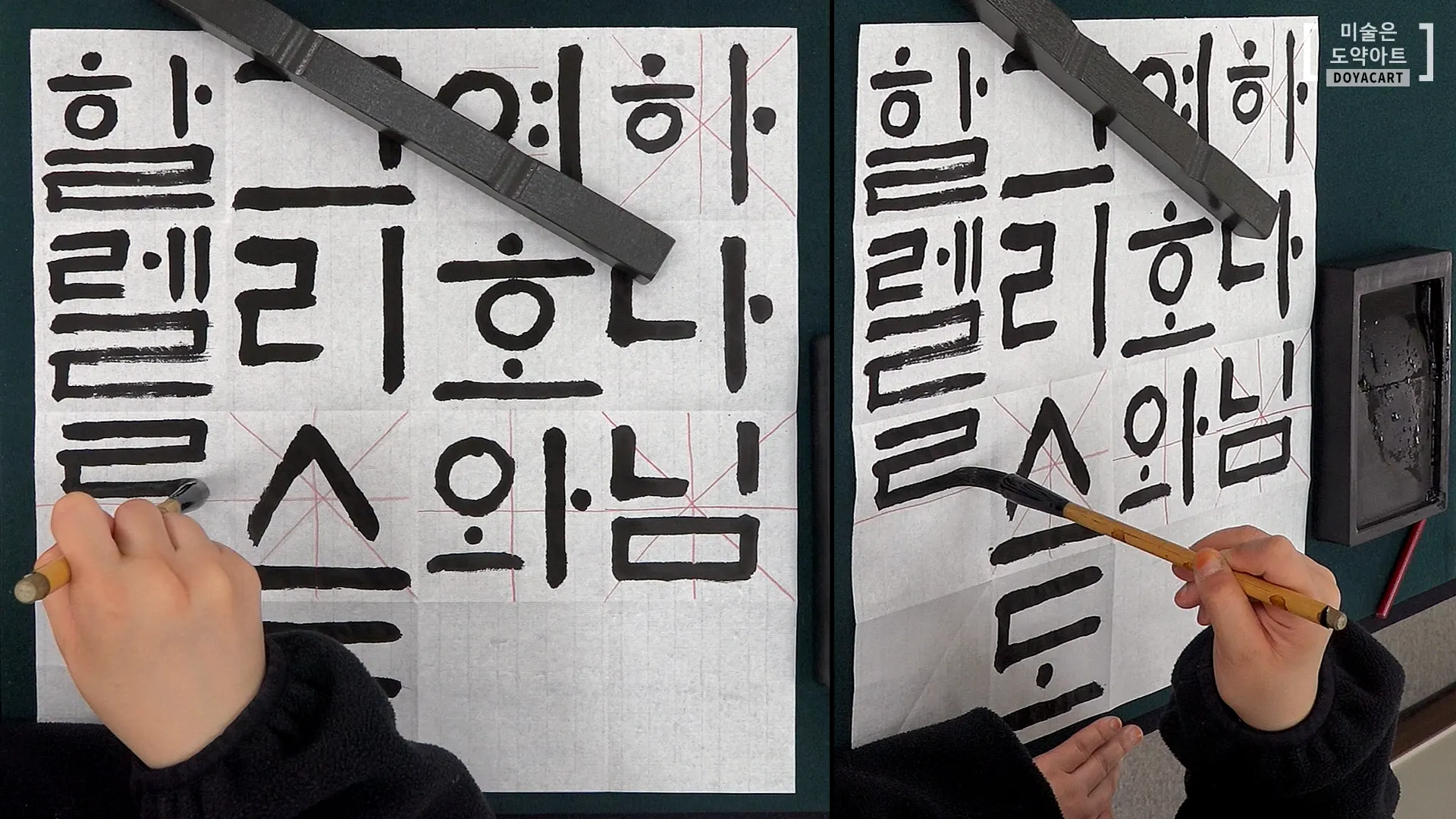훈민정음을 바탕으로 하는 한글 판본체로 성경에서 자주 볼 수 있는 '하나님, 여호와, 그리스도, 할렐루야'를 연습해 봅니다.