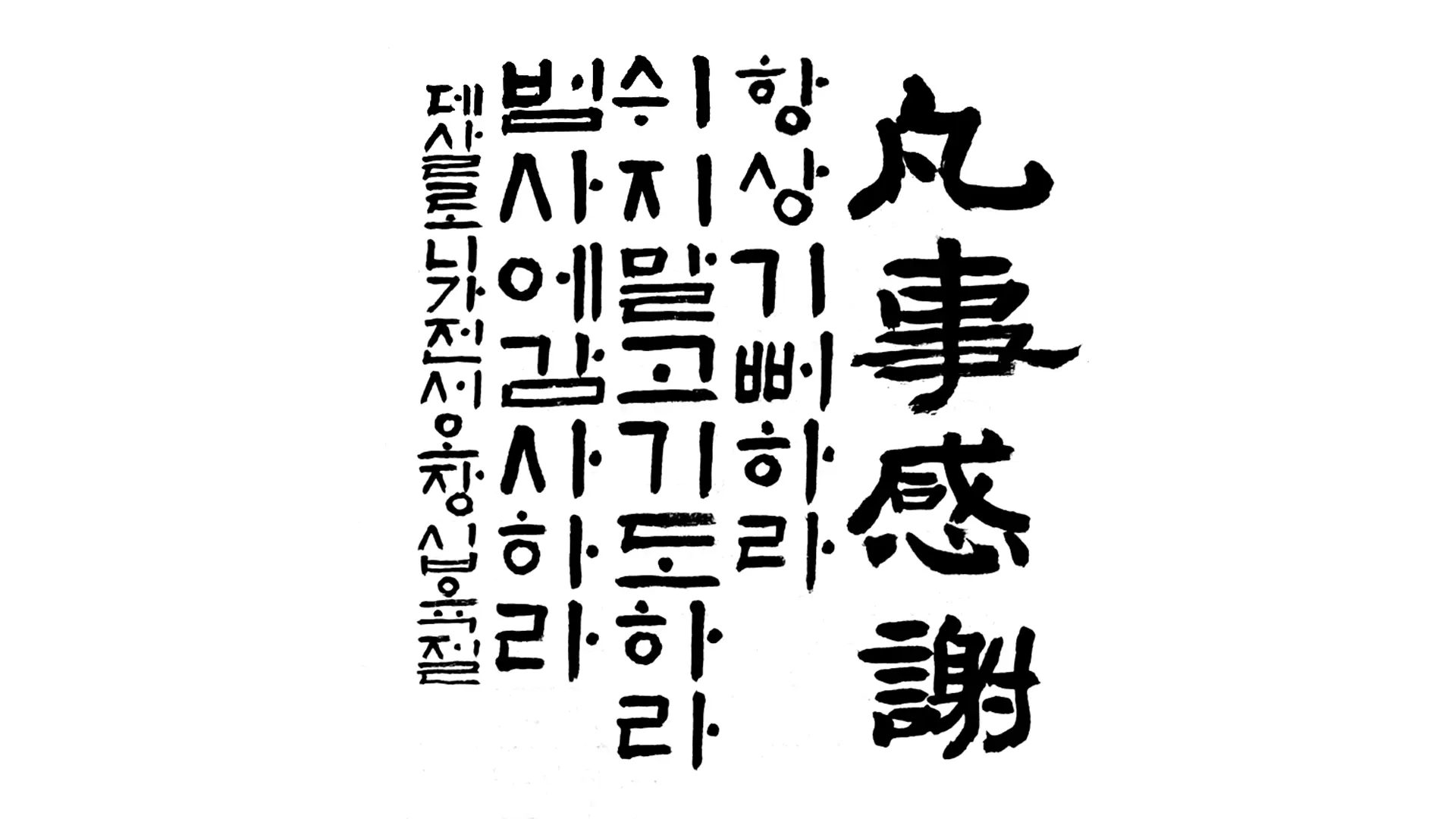 '항상 기뻐하라 쉬지 말고 기도하라 범사에 감사하라' 널리 알려진 성경 구절을 판본체로 쓰고 범사(凡事)와 감사(感謝)를 예서로 써서 한글과 한문이 어우러지는 작품을 제작해 봅니다.