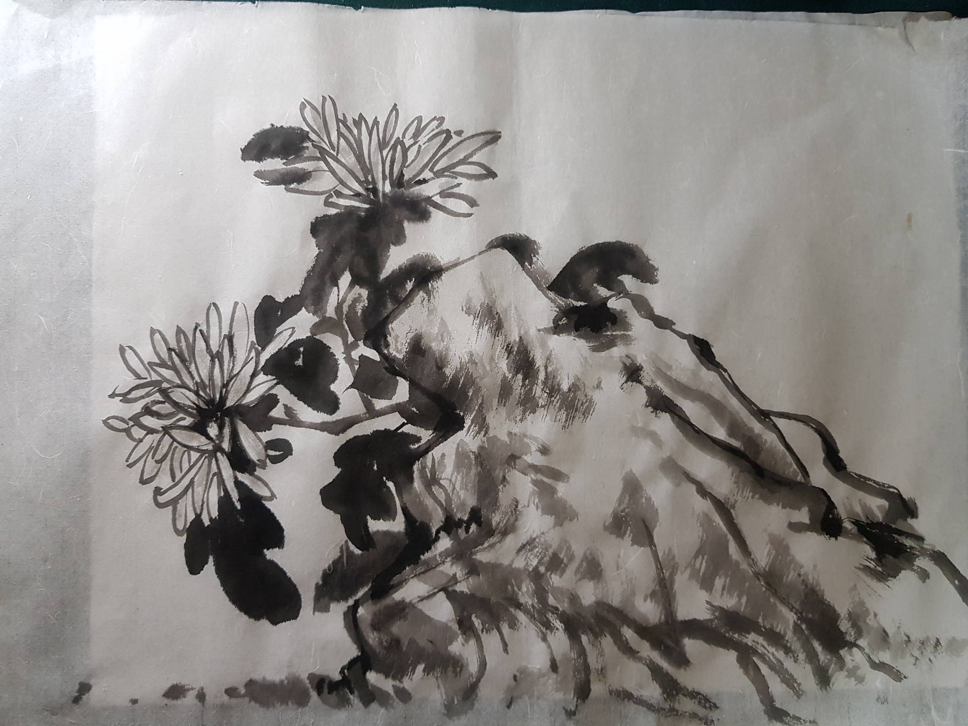 바위와 국화의 구성 입니다