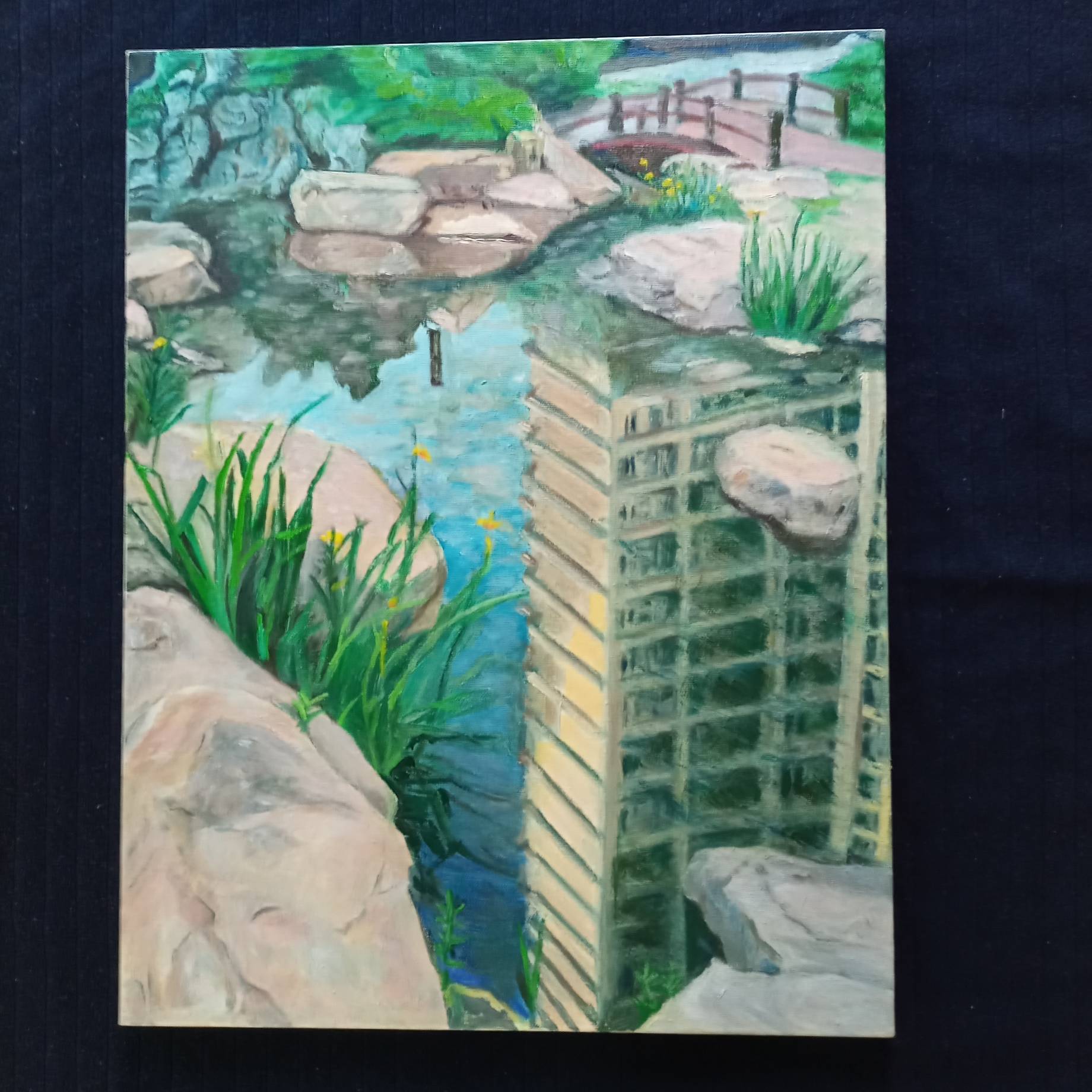 새종 가온마을 6단지입나다 어느 날 길건너 우리아파트 바로 옆단지 걷다가 연못에 비친 풍경이너무 아름다워 그림을 그렸지만 사진과 같은 색깔을만들기가 가장 어려웠고 물에 비친 건물의 표현은더 어려웠어요 홀로서기가 어렵네요계속 수정해야 할 거 같아요