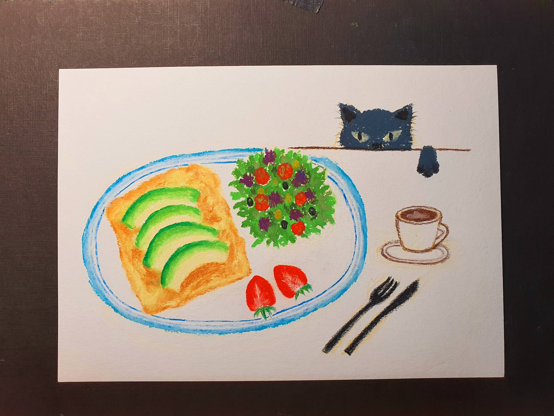 선생님 안녕하세요^^브런치와 고양이 올립니다^^~딸이 제 그림보고 샐러드 아니고 화초인줄 알았다고해서 빵 터졌습니다ㅎㅎㅎ~이런 부분도 차차 나아지겠지요^^;;;;오일파스텔 매력에 빠져듭니다^^~