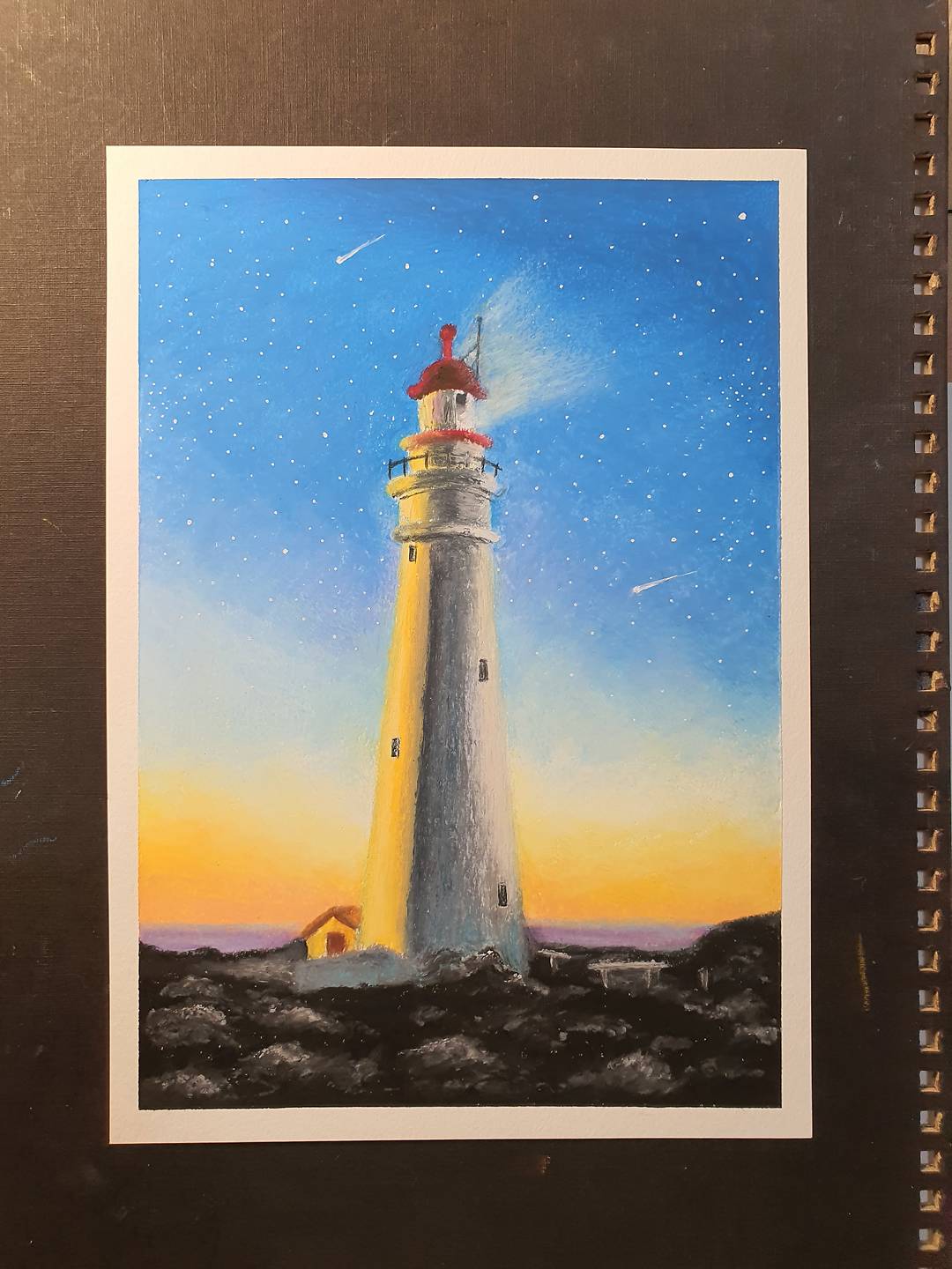 선생님 안녕하세요^^등대그림 올립니다^^꼭 배워보고싶은 그림중 하나인데 이런 풍경 가르쳐 주셔서 감사합니다^^그리다보니 바다가 두꺼워졌는데 바위를 올려야찰지 하늘을 내려서 덮어야할지 모르겠습니다^^;;;