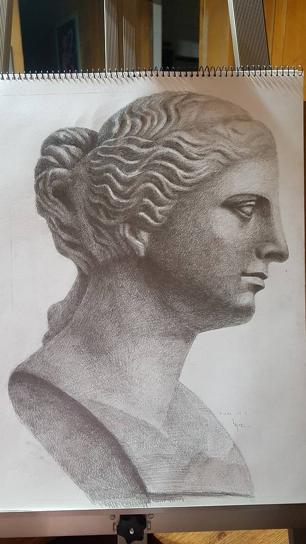 비너스를 다시 그려봤습니다이번엔 중요부분만 재고 나머지는 대충 눈대중으로 그렸는데 그래서인지 머리카락이 조금 잘못 표현되기도 한것 같습니다다 그리고 나니 여전히 미흡해보이지만 샘 조언을 위해 올려봅니다^^