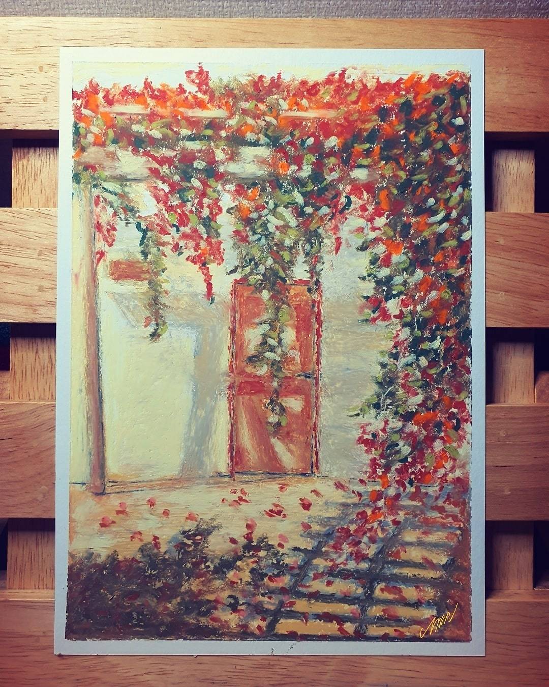 그래서일까요?? 선생님께서 그리신 담쟁이 덩쿨은 자연스럽게 늘어졌는데, 저는 벽화에 그려진 그림을 옮겨 그린것 같은 느낌이 많이 있어서 아쉽습니다 ㅠ.ㅠ