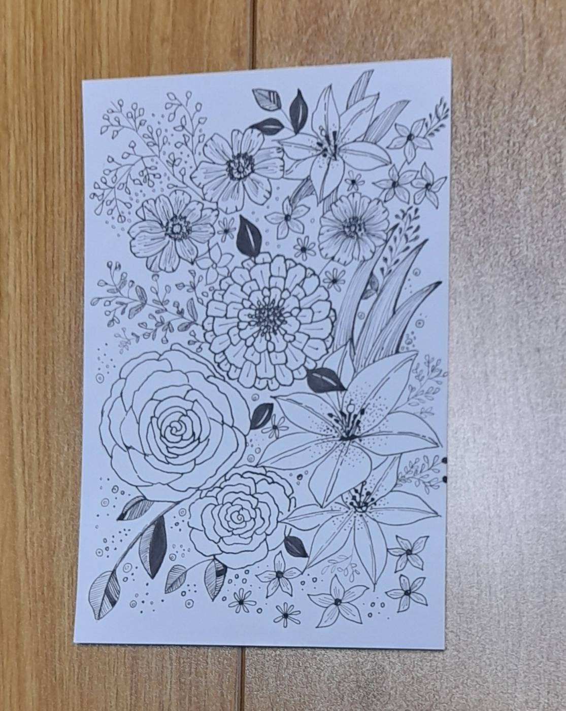 초급 과정에서 이 강의를 보는 순간 도저히 할 엄두가 안 나 패스 했다가 최근에 고급 과정을 다 그리고 다시 접하니 용기가 생겨서 시도했는데 용지를 잘못 선택하는 바람에 채색은 못 했어요.. 감사합니다!