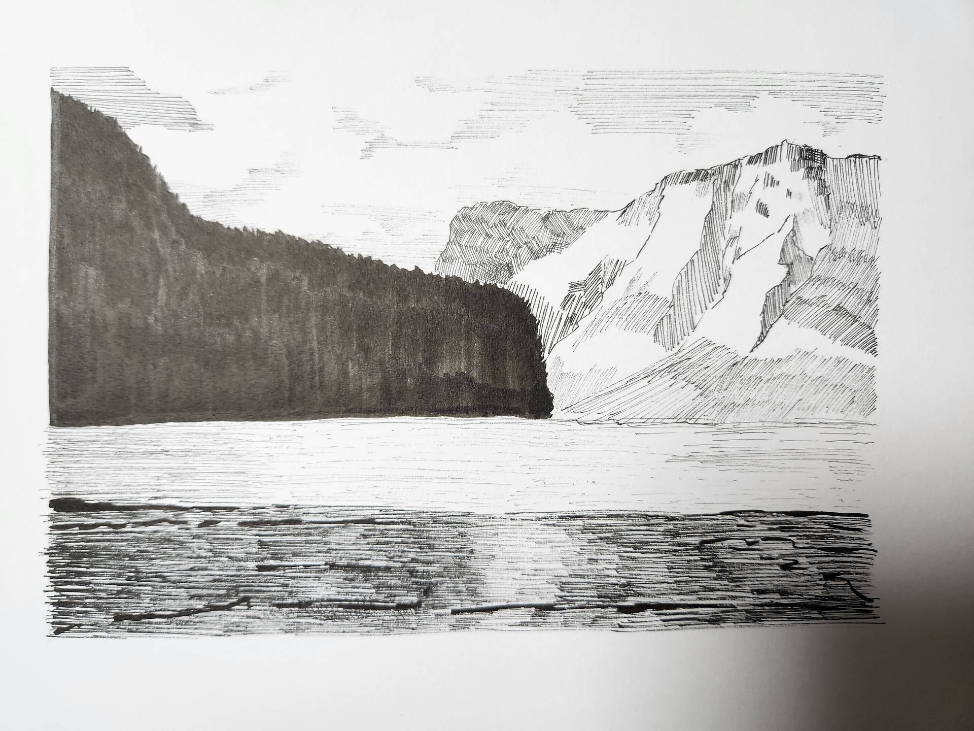 바위산과 강이 있는 풍경