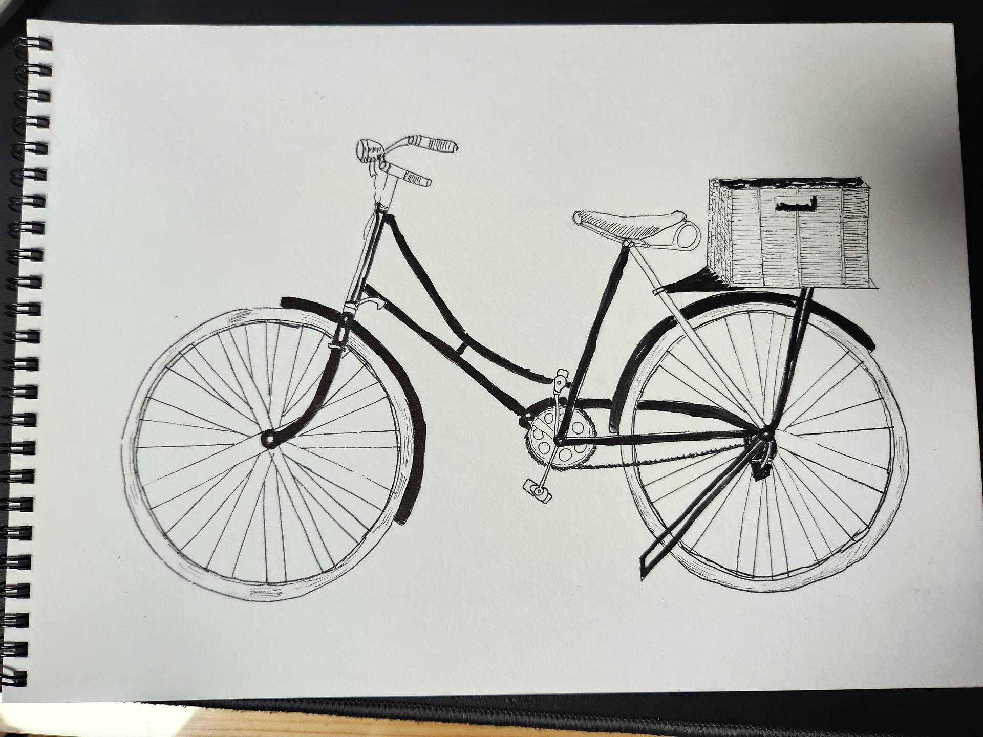 이정도로 자전거를 알아 보게끔 그려본건 처음이에요~~^^ 펜으로 그리면서 원이 찌그러지구 자전거 형태 이해 부족으로 부분 부분 이상하긴 하지만 누가 봐도 자전거라는걸 알아 볼수 있다는 점이 만족스럽네요 리본은 도저히 못그릴거 같아요 ㅜㅜ