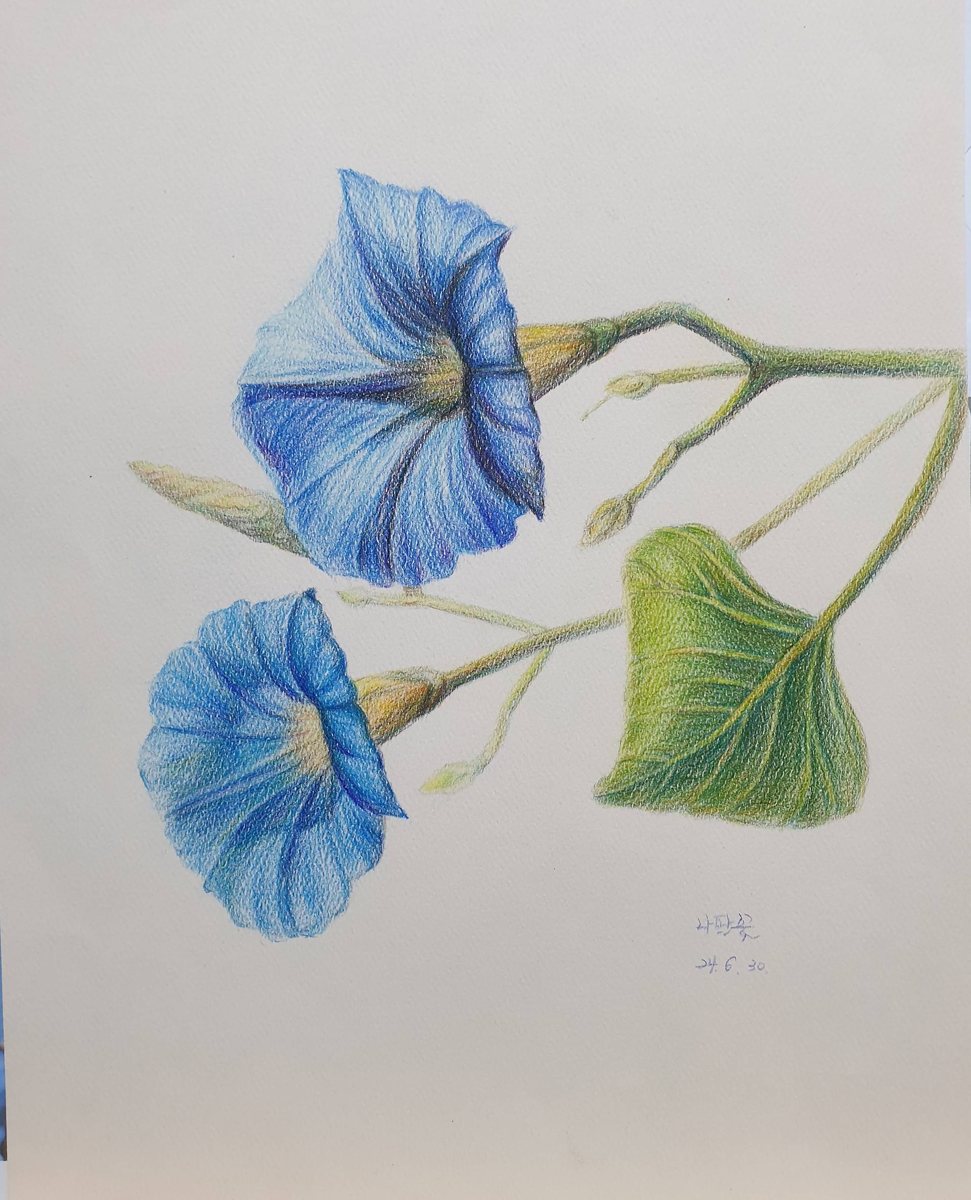 색연필 나팔꽃 그려보았습니다