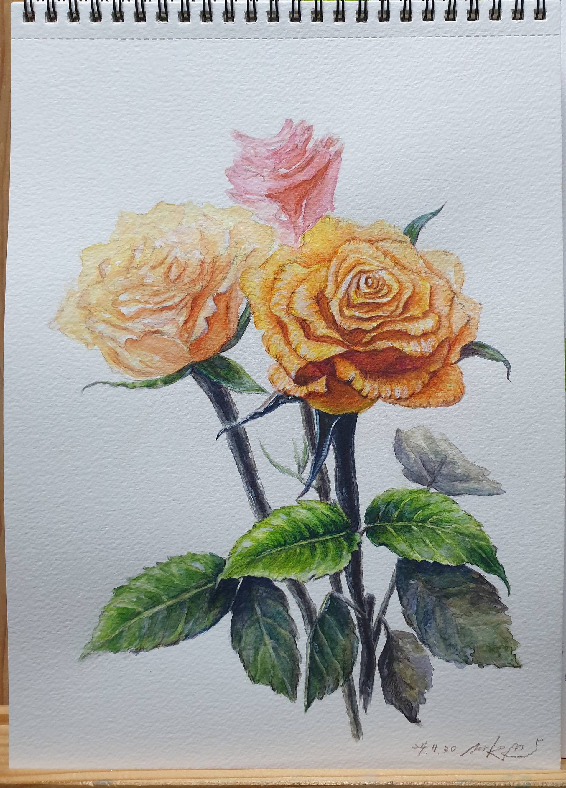 수채화를 ㄱㅣ본으로하는 장미를 채색해보았습니다