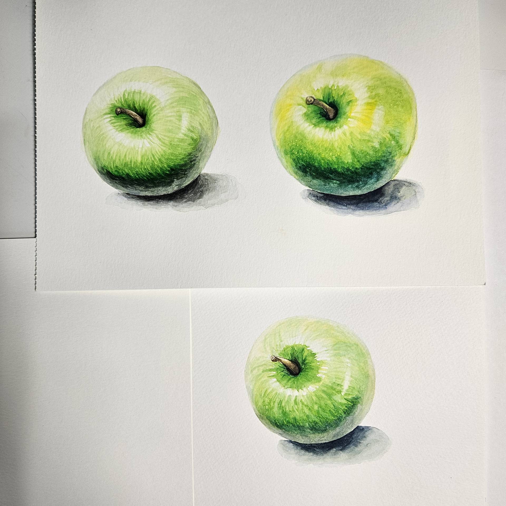 안녕하세요 선생님 사과 연습중이예요. 반사광 부분과, 가장 진한 부분과 반사광이 연결되는 부분이 어려워요. 그 부분이 사진과 다르게 약간 창의적? (상상력)으로 그려야되는 부분이라, 어떻게 해야할지, 어떤색을 넣어야 할지 잘 모르겠어요. 진하게도 하고 연하게도 해봤어요. 조언 부탁드려요. 😭