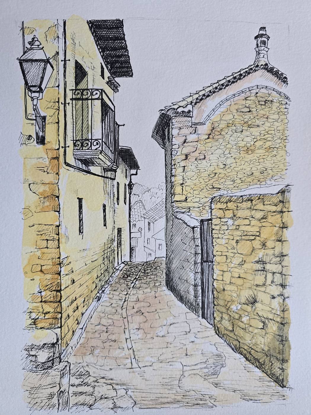 오른쪽 건물이 조금 작았으면 하는 아쉬움이 있네요. 50여년만에 물감을 접하니까 색 배합이 엉망입니다. 전체가 다 노랑이로 되었네요.