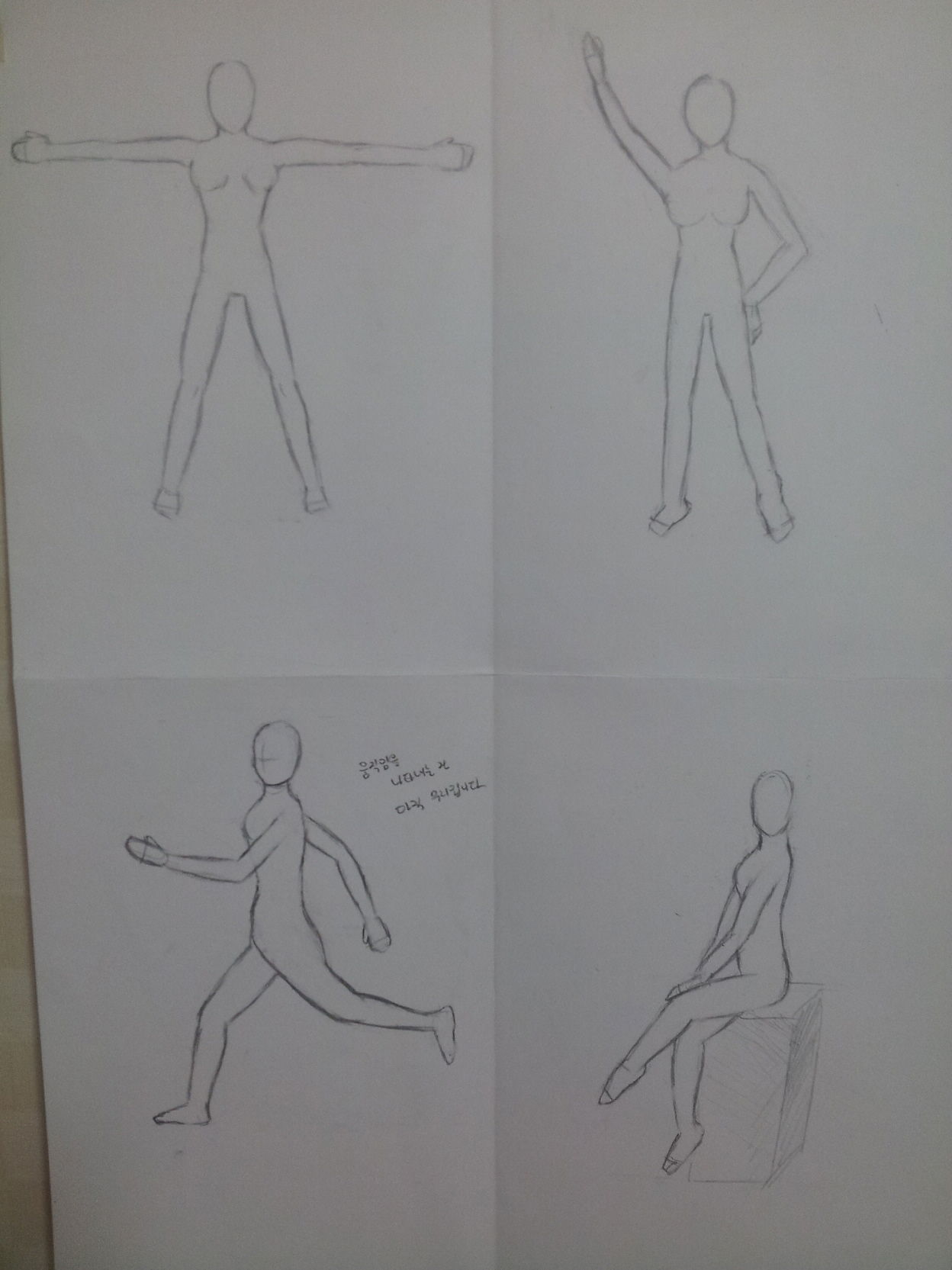 지적받은 팔의 길이 수정했습니다. 뭐... 질문드립다만 엄지손가락, 발가락이 모두 사람쪽으로 안으로 들어오죠? 그리고 달리는 포즈 같은 경우엔, 참... 동세는 아직 표현하기 좀 어렵네요. 움직이게 하는 것 처럼보이고 싶어도 어렵습니다. 또한 질문을 드립니다만, 일러스트나 보면 포즈나 그런 걸 다양한 각도에서 그리는데요.. 그런 거 하려면 어떤 씩으로 연습을 해야할지...
