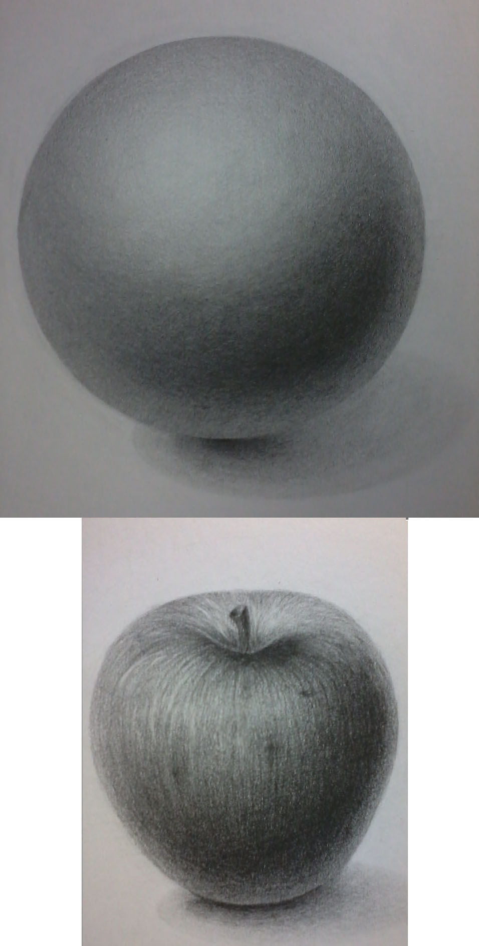 [구] 까매서 볼링공 같네요(볼링공 크기로 그렸어요;) 처음에 톤 깔때 어두운 부분을 좀 진하게 해버린 바람에 중간톤이 자연스럽지 않아서 엄청나게 선연습을 하게 됐네요..다채우느라고 그래도 사진을 찍으니 중간톤이 좀 뜬거 같은데 전체적인 명암에 대한 지적 부탁드려요~ [사과] 그리다 중간에 망했다 싶어서 새로할까 망설였습니다만 일단 완성은 했습니다.. 잘 안되는 짧은선,진한선(필압) 그리고 자세,, 의식하면서 그리다보니 그리는 중간에 뭘 그리는지 잊어버리고 말았네요;;구의 명암 표현을... 짧은선 좀 익숙해졌다 싶었더니,,세로곡선..이게 또 아예 안되서ㅜ 팔꿈치가 많이 올라가지 않도록 손목 힘으로 그려보려고 했는데요 손목에 힘이 거의 안들어가요 글씨 첨 배우는 초딩 마냥 비뚤비뚤한게. ............(손목으로 조절하는 거 맞죠?) 일단 하이라이트 지우개질 해보려고 시도는 했습니다. 세로선으루,, (왼쪽 위부분요. 보일락 말락_) 여러가지 반성할게 많고 그리는 과정을 지적 받지 못하는 것은 아쉽습니다만, 완성샷으로 보았을 때 고쳐야 할 부분은 무엇일까요? 바쁘실 텐데 언제나 성의있게 답변 주셔서 감사 하고요.. 선생님의 지적은 많은 도움이 되고 있답니다^^