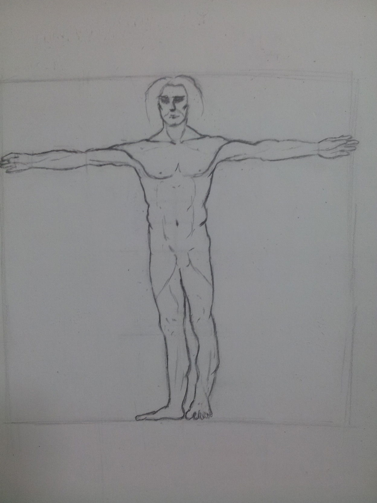 레오나르도 다빈치의 인체 중 첫 번째 과정입니다. 일단 했긴 했는데 어떠신지 모르겠습니다. 선을 그을 때, 중심을 잘못 맞춰 이상한 감이 조금 있습니다만 괜찮은 것 같습니다. * 아직 얼굴묘사는 너무 어렵더군요....