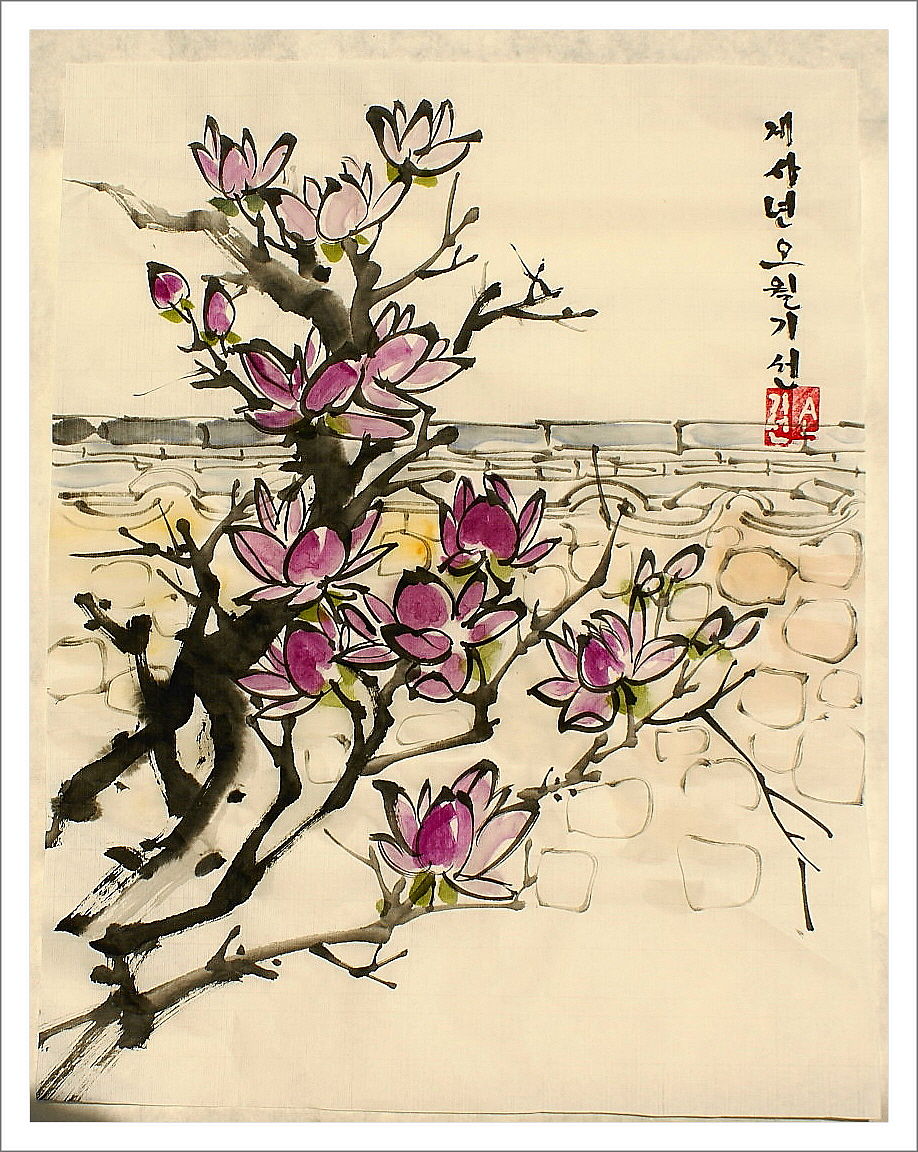 예전 기억을 살려 자목련 그려봤습니다.