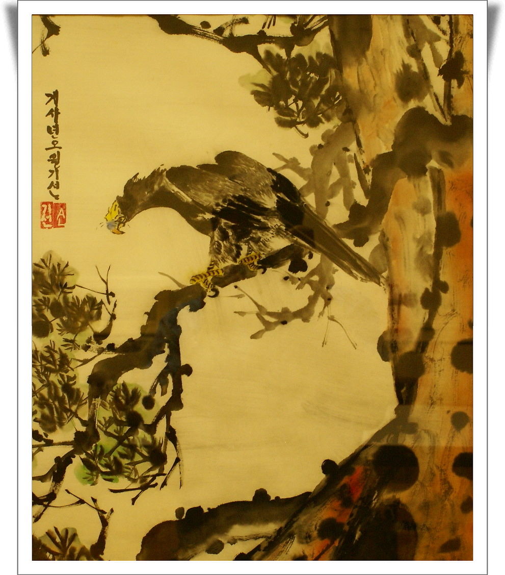 독수리는 호랑이기법을 이용하여 제법 된듯한데, 소나무가 엉성한 느낌입니다. 구도는 어떤지요?