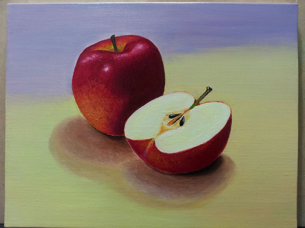 사과의 색감을 표현하기 위하여 시행착오를 반복하다가 일단 마감을 하였습니다.