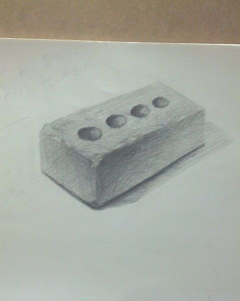 아직 가는 선이 잘 안나와서 명암표현이나 여러가지가 부족하지만 그래도 정육면체보다는 개인적으로 조금 나은 듯... 한데 선생님께서 보시면 아직 많이 부족하겠죠? 구멍 부분 명암 표현이 아직 잘 이해가 안되서 힘들었고 선연습 부족으로 아직 명암이 여러번 겹쳐진 부분은 그냥 막 문질러 놓은거 같은 느낌입니다. 그리고 진한 선을 가늘게 하지를 못하겠습니다....어떻게 해야되나요...
