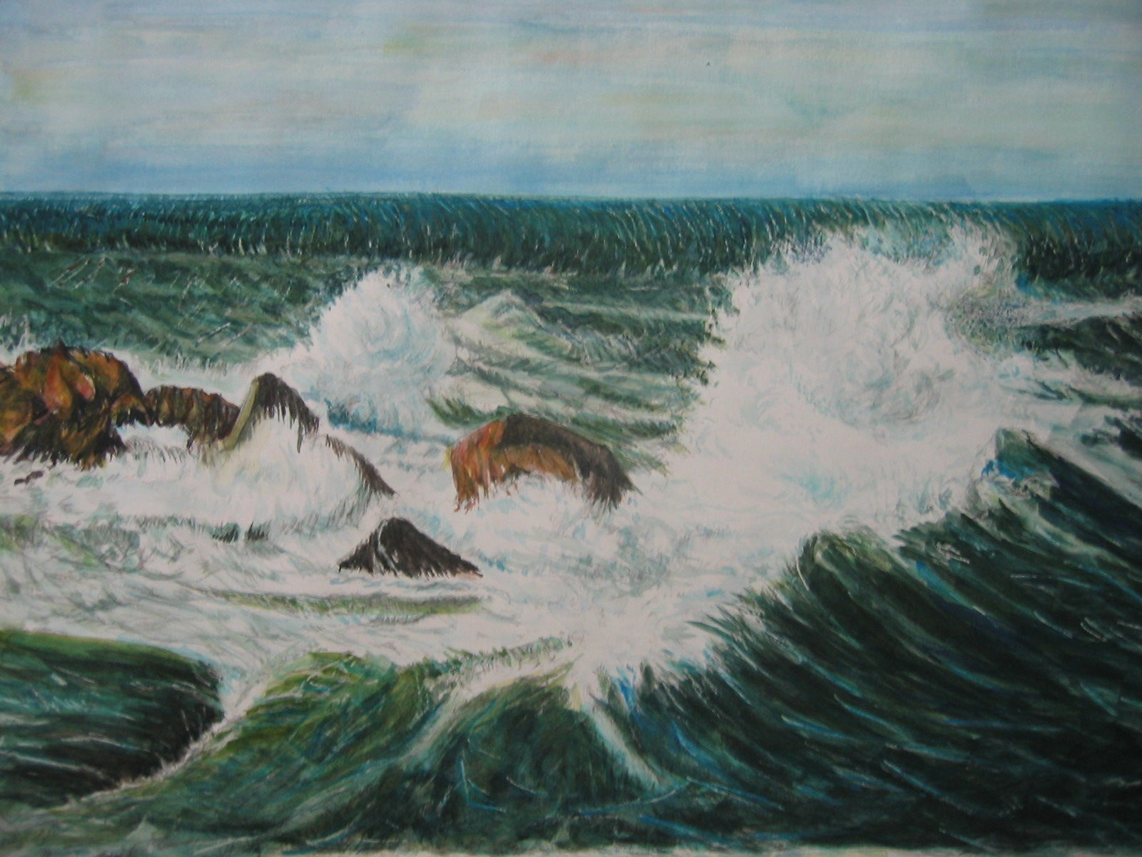선생님.안녕하셨읍니까? 파도 그린거 올림니다,. 지도부탁드림니다. 스페인 거리 사진 풍경은 아주 아주 쪼끄마케 설정 돼었나보내요 돗보기안경쓰고도 어리어리해요..?선생님 스케치 보고 그리는건가요 ㅎㅎ