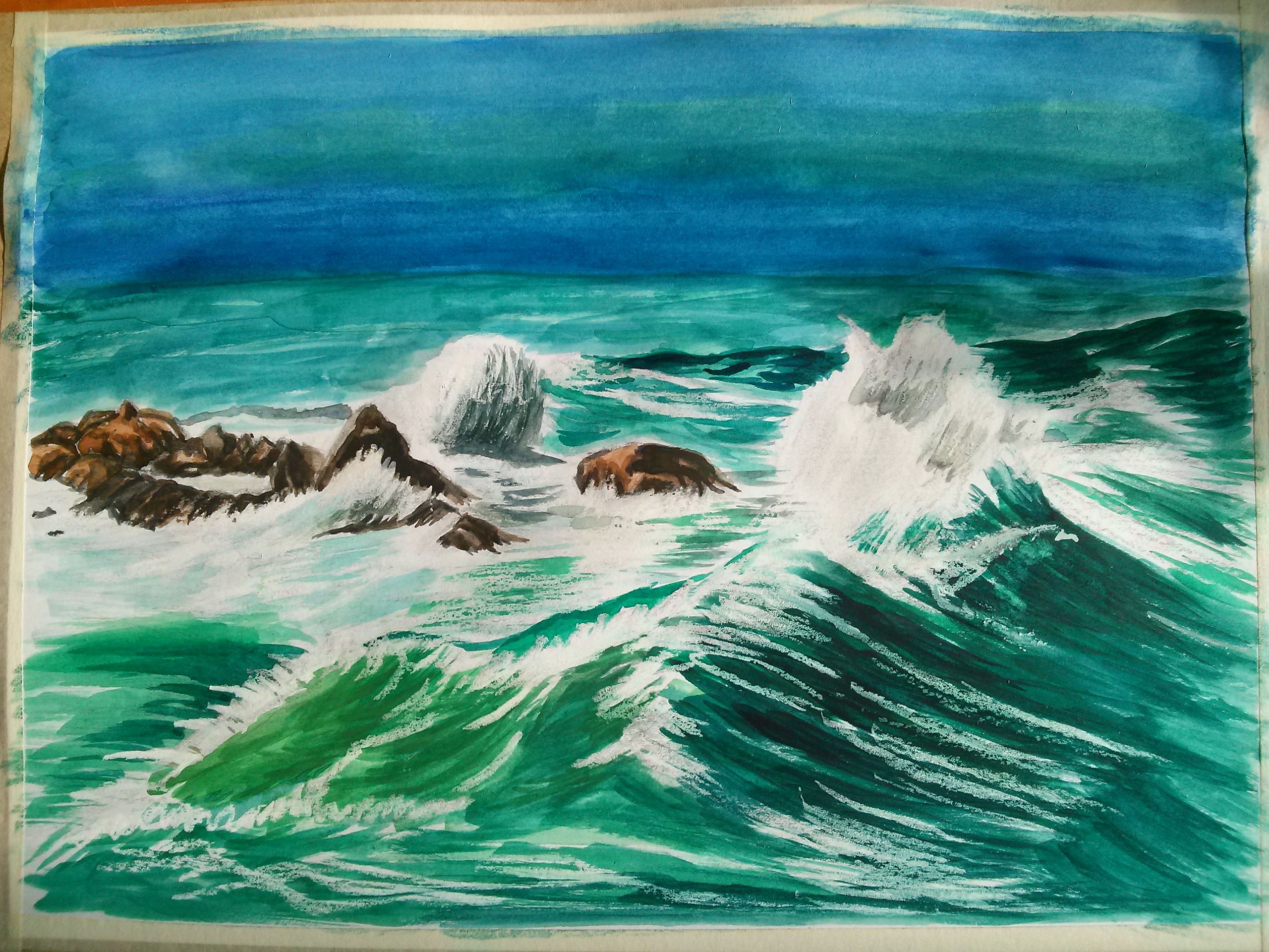 파도치는 바다를 그렸어요 근데 하늘도 라벤다가 업서서 대충 섞어칠 해 ㅅ구요 밑칠 크레파스를 잘못칠해 잘 안됏네요 조언 부탁합니다.