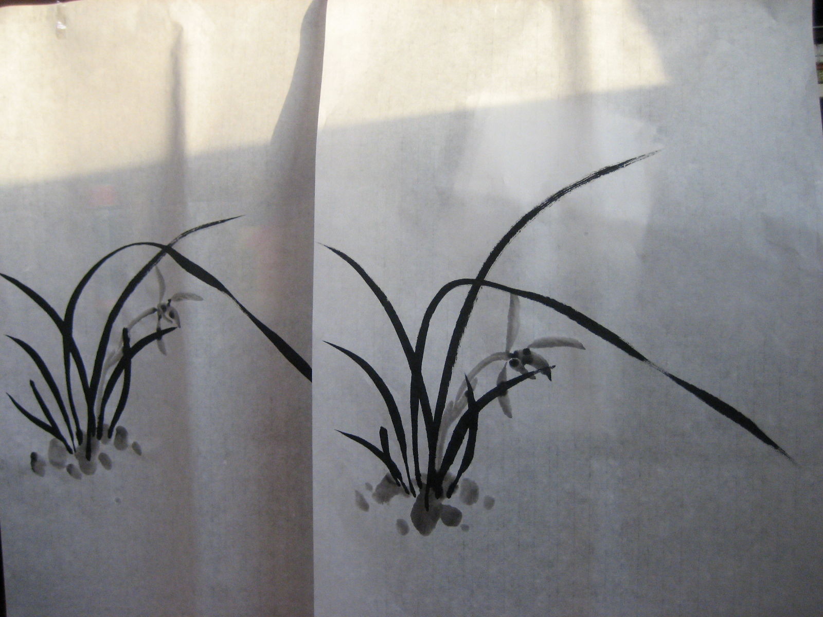 문인화로 처음 인사드립니다.^^ 난 생각보다 어렵네요. 지도바랍니다. 저녁 놀이 창으로 스며들어 비쳤어요~~^^
