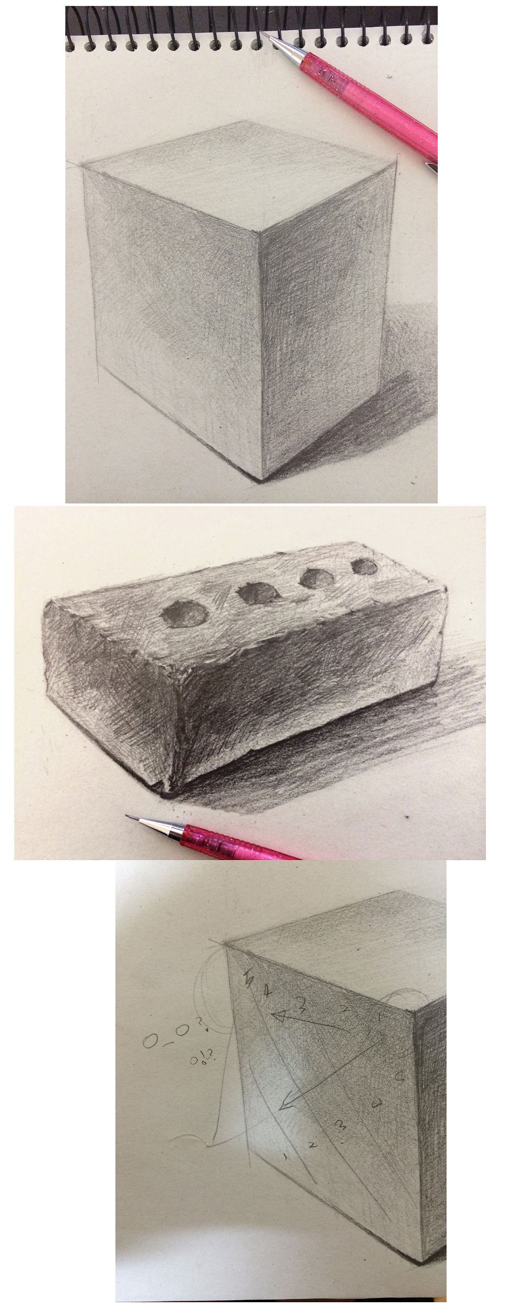 중간면 명암이 반대가 아니냐는 말이 나와서 질문드려요. 그니까 중간면 명암이 뒤로 가면서 진해지는게 정상이라는데 전 소묘 까막눈이라서요ㅋ 강의를 본봐 쌤이 틀릴리가 없다는 생각에 질문해요. 이해 하기 쉽게 설명좀 해주세요! ps - 아 글고 강의 재밌게 보고있어요! 3일째인데 일에 찌들어있는 제 삶에 윤활유와 꿈을 다시 꾸게 해주네요. 명암에 대해선 무슨 설명을 하시든 전 쌤 믿고 따라가요! 그러니 쉽고 자세히 설명 해주세요! (첫번째 사진 외각선은 얼마나 똑바른지 다그리고 자대고 한번 그어봤어요)