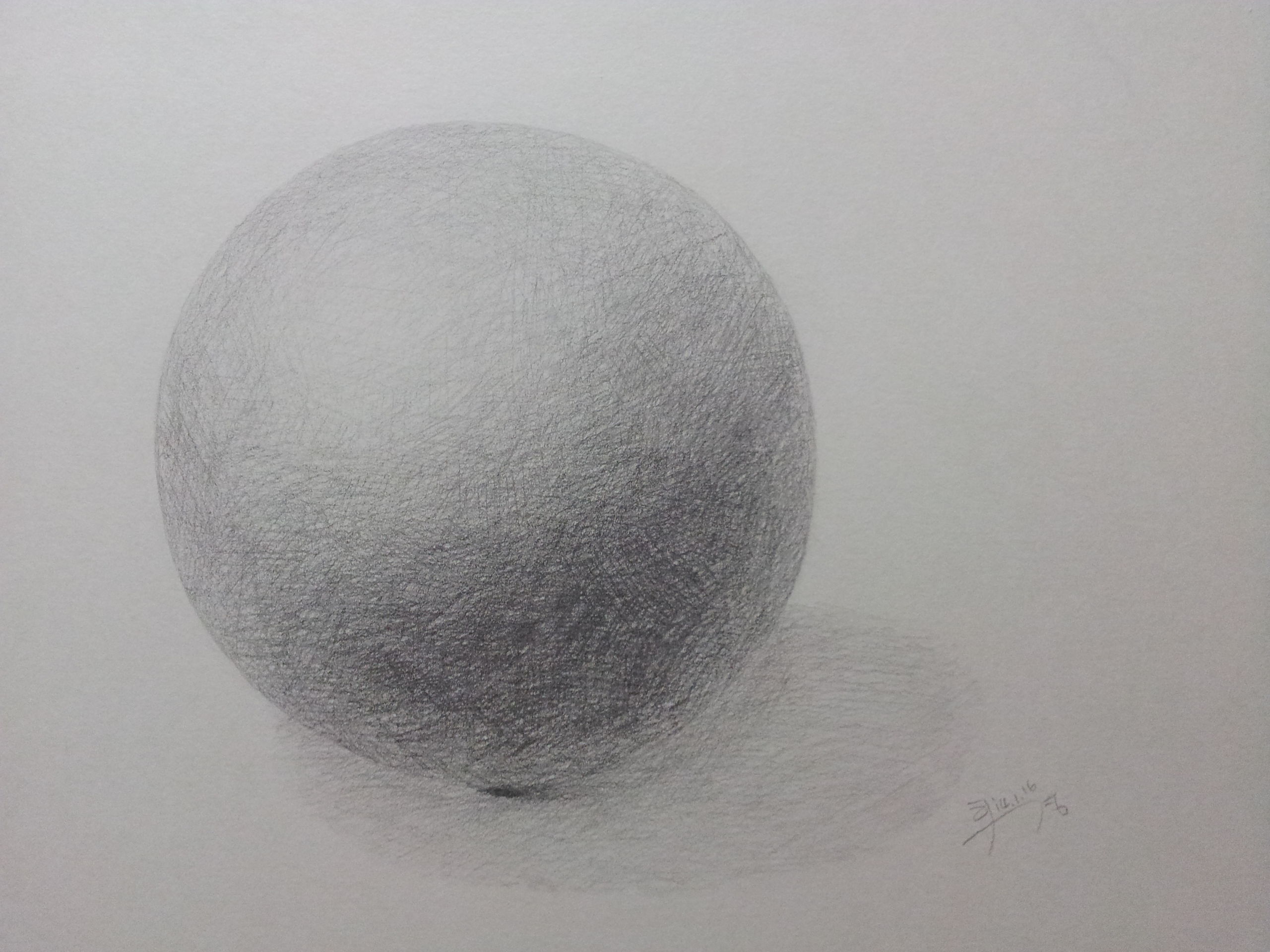 안녕하세요^^ 김윤아 선생님~~ 구 그렸습니다 ~ 동글한게 그려지네요 ㅎㅎ 명암넣을때 선겹치는 부분에서 자연스럽게 해야 한다고 하셨는데 진한 부분할때 선겹치는곳만 너무 진해서 거뭇거뭇하니 자연스럽지가 않으거 같아요 ~ 그래도 생각했던것보단 잘그려진것? 같아서 혼자 좋아라 하고있어요ㅎ;;