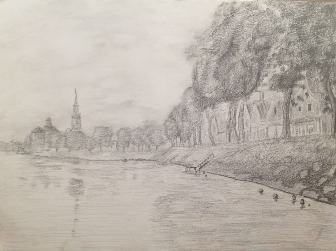 안녕하세요 교수님 정말 오랫동안 그렸는데 만족스럽지 못하네요. 나무, 물결, 구름, 원근 모든게 표현하기 정말 어렵습니다. ㅜㅜ 오른쪽 가로수길 나무를 그리다가 너무 마음에 안들었지만 망치더라도 끝까지 하라는 말씀데로 일단은 해보았습니다. 교수님이 정말 부럽습니다.