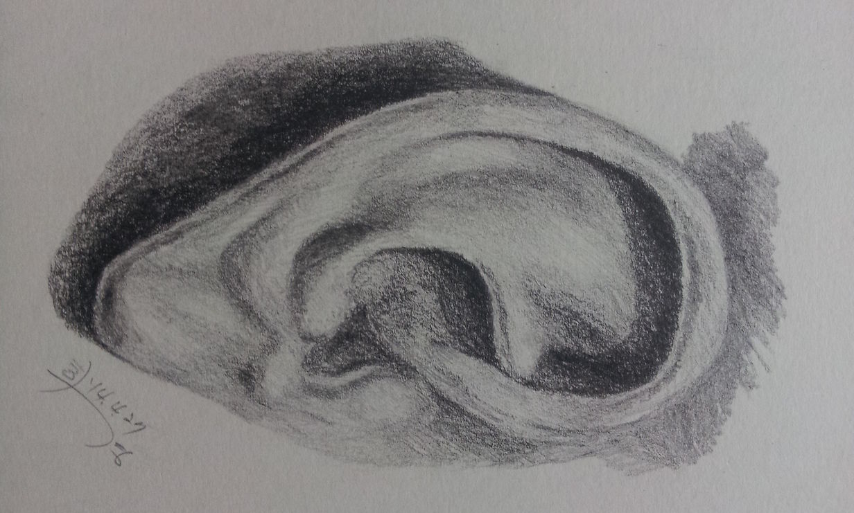 안녕하세요~ 김윤아선생님 ^^ 귀연습했어요 ~ 처음엔 그냥그렸는데,,이건 4등분 해놓고 그렸네요 ㅎ; 처음보단 형태가 좀 낫긴한데요,,자꾸 등분해서 그리면 눈대중이 없어지는건 아닌지,,, 4b가 너무 진하게 나오는것 같아요,, 손에 힘을뺀다고 하는데도 손은 손데로 아프고,선은 진하고ㅠ 더 힘을 빼야 겠지요?