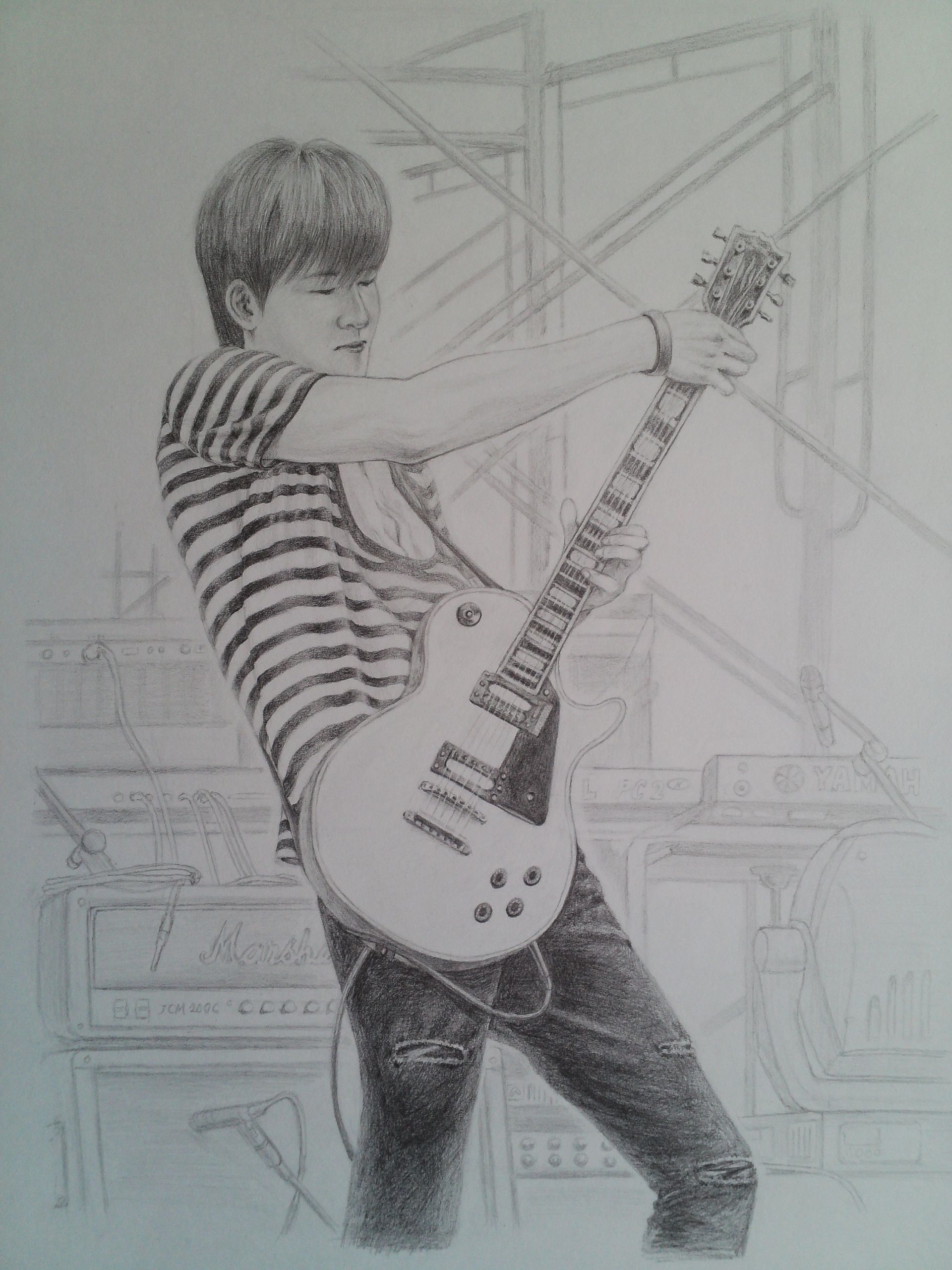 그림을질질 끌다가 오늘에서야 끝냈네요;그래도 기타를 그리는게 재미있었습니다~~뒤에 배경은 색이 없어서 허전한 마음에 자꾸 손이 가서 색을 얇게 입혔는데요~~차라리 그냥 놔뒀는게더 깔끔해보였을거같네요;;