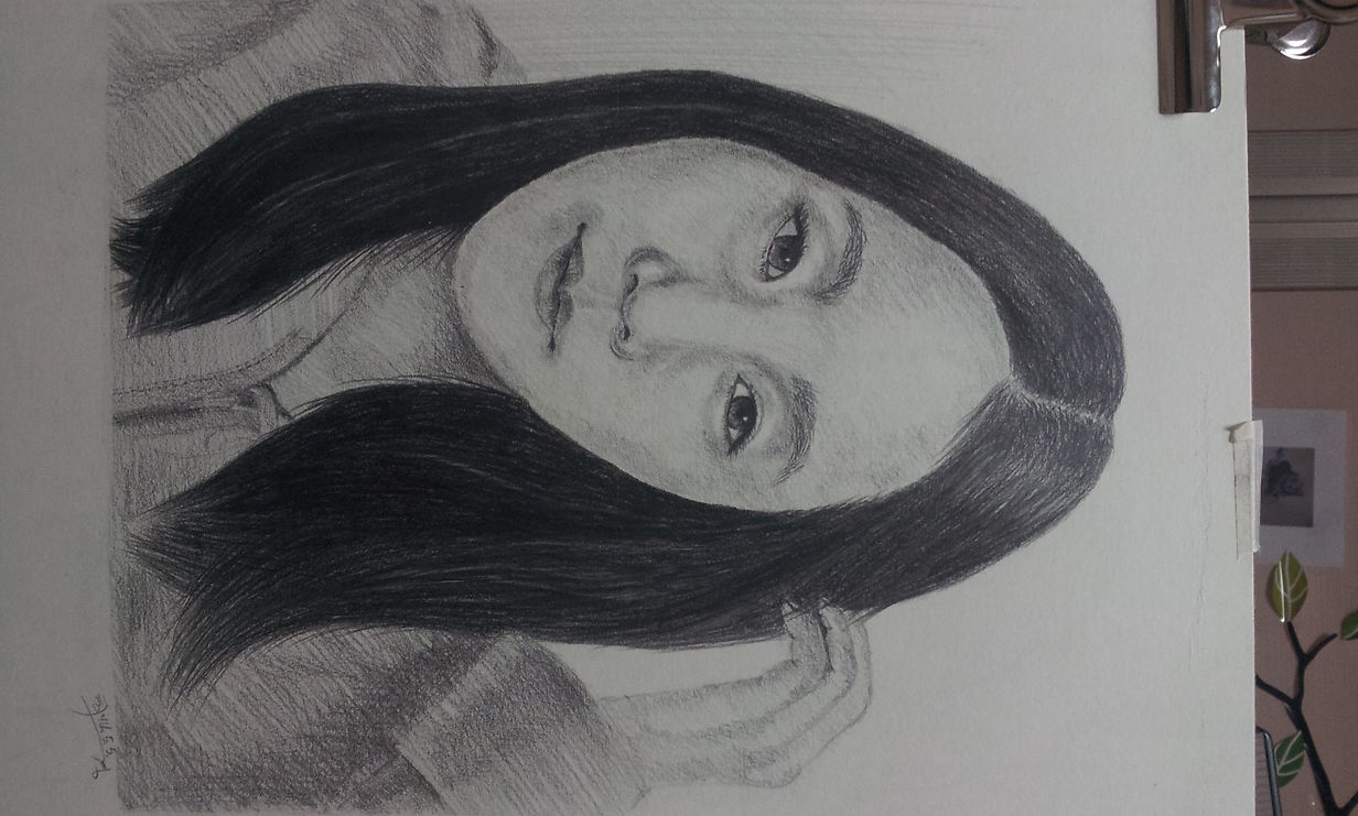 안녕하세요 ^^ 김윤아선생님 ~ 선생님 얼굴 그렸습니다 ~ 깜짝 놀라셨죠 ? ㅎ;; 너무 못그려서요 ㅠ,, 줄긋고 스케치하는것도 한참걸리더라구요 ,, 스케치할땐 좋았는데,, 명암넣으면서 좀 어색해진것 같아요 ㅠ; 머리카락도 연필로 밑작업할때 너무 진하게 했는지, 샤프로 라인긋는데 티가잘안나더라구요 ,, 그래도 첫인물화 선생님을 그리게 되서 좋았구요 ^^ 옆모습은 더 이쁘게 그려드릴께요 ~ 근데요 사진이랑 선생님이 그리신 그림은 저를 쳐다보고계시는데,, 제가 그린그림은 다른데를 보고 계신것 같아요 ~ 똑같이?아니 닮게 그릴려고 했는데,, 안닮은게 이렇게 나타나나봐요 ~