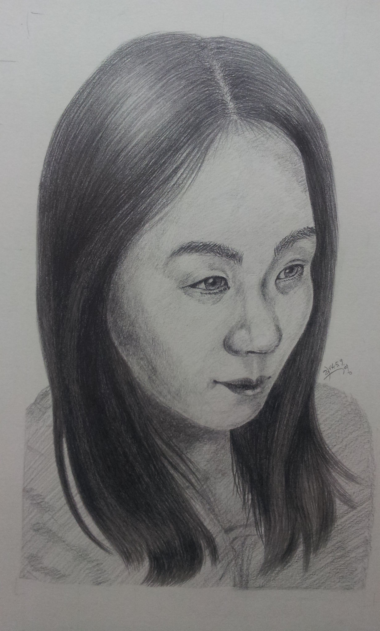 안녕하세요 ~ 김윤아선생님 ^^ 선생님 옆모습그렸습니다 ~ 어쩜,,,,,닮게그린다는것이 이렇게 어려운줄 미쳐 몰랐네요 ㅎ;;;;; 칸쳐놓고 하는거라서,,한칸한칸 그리다 보면 똑같아지겠거니 한것같아요 ~ 너무 쉽게 생각했던거 같네요 ㅠ;; 그렇다고 대충그리거나 그러진 안았는데 ~ 집중~집중해서 그렸는데,,너무 집중한 나머지 눈이 몰려서 머리가지 띵~~해졌는데 ,, 좀 실망스러운것 같아요 ㅠㅠ 나아지는 모습보여드려야 되는데,,그러지 못해서 죄송해요 ~ 그래도 머리카락 부분은 약간 감잡은느낌? 이 드네요 ㅎㅎ ~