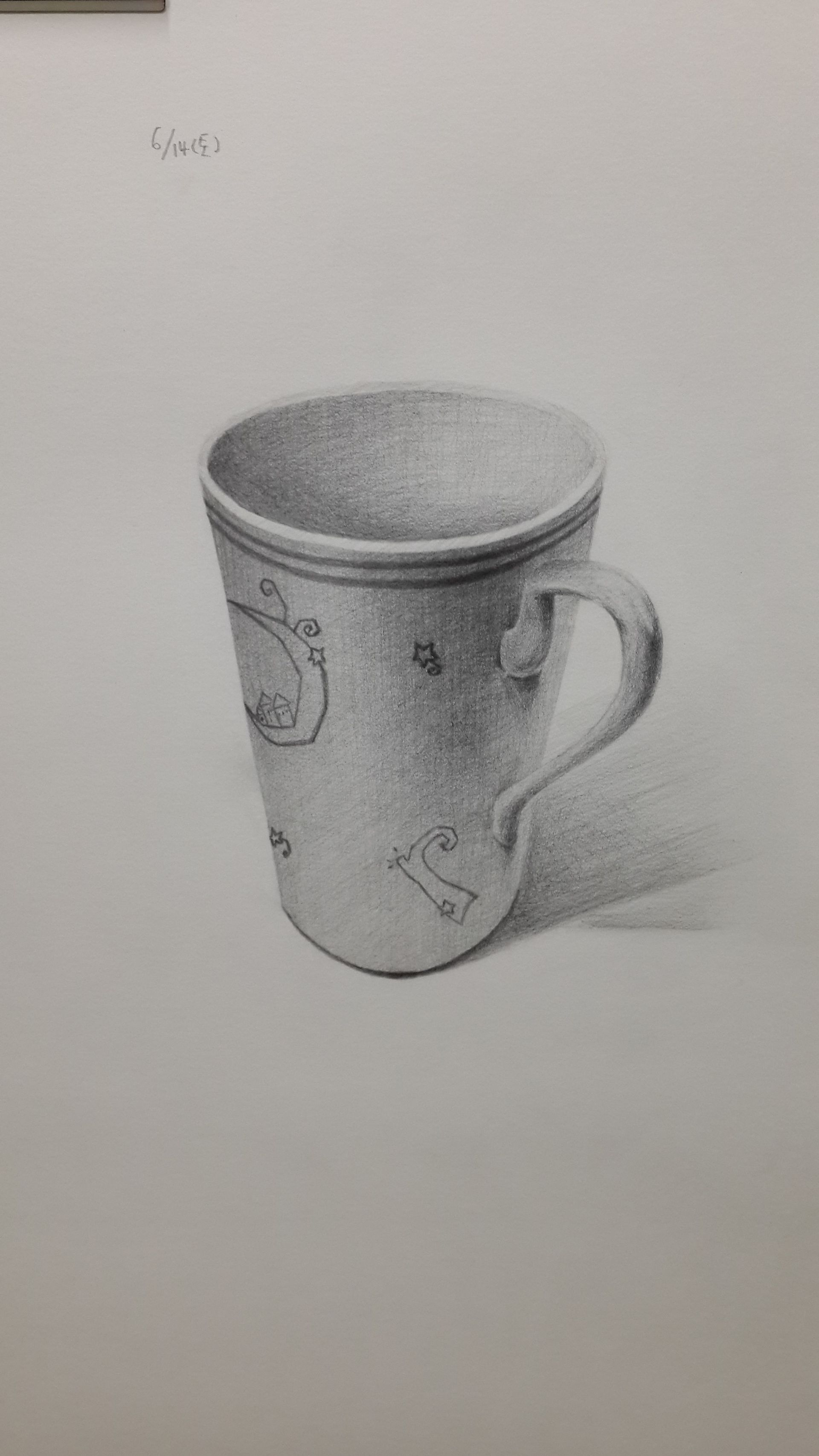 안녕하세요 선생님~ 집에 있는 컵을 그려보라고 하셔서 그려보았는데요... 컵의 윗면과 아래면의 원 크기가 다른데요.. 이경우에도 위면의 반지름과 동일하게 그리는게 맞나요? 그리고 손잡이가 다원형으로 이뤄진 손잡이라서... 이럴경우 명암처리를 어떻게 해야하는지 그리면서 무척 고민을 많이 했습니다... 명쾌한 답변 과 보완점 알려주셔용 ~ 감사합니다 ^^
