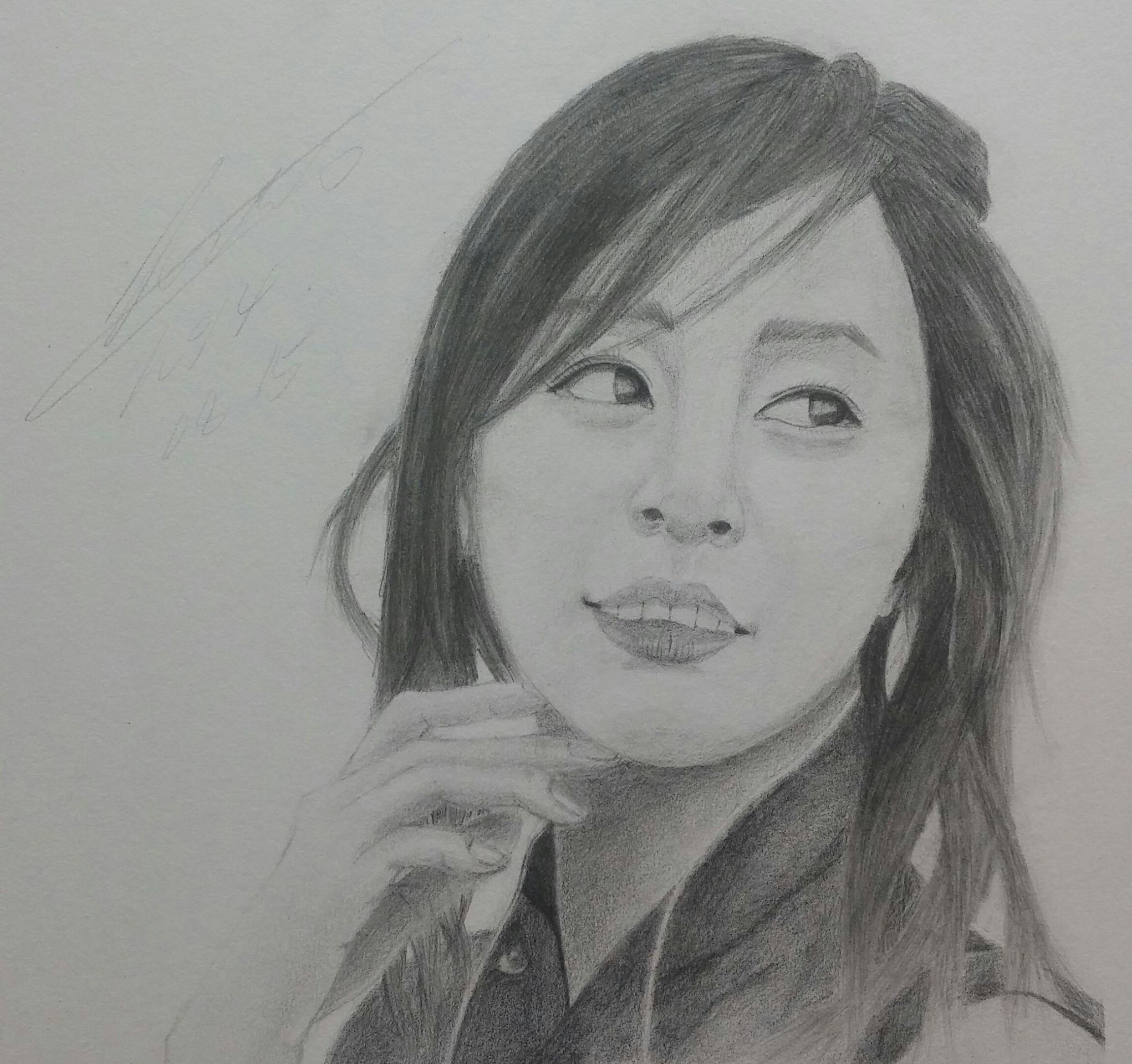 먼저 머리카락을 지우개로 밝은 부분을 표현해 보려 했는데 너무 어색해서 지웠다 그렸다 하다보니